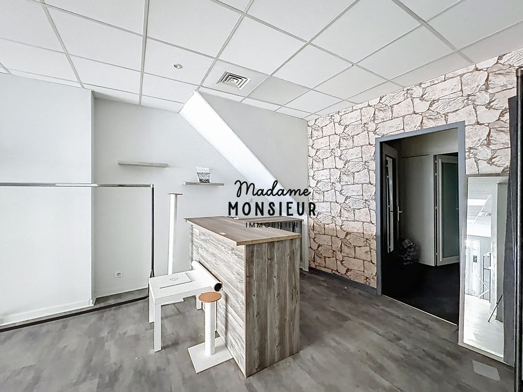 Le local se compose d’un espace principal lumineux, permettant d’accueillir une activité commerciale, complété par un bureau indépendant ainsi qu’un espace de réserve et de stockage et un sanitaire. Sa configuration modulable permet de s’adapter facilement à différents projets, qu’il s’agisse de commerce, de bureaux, de services ou de showroom.