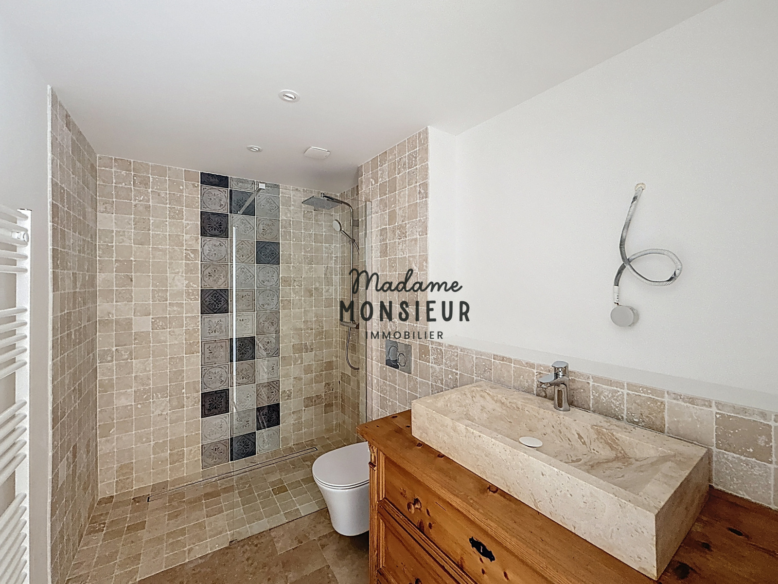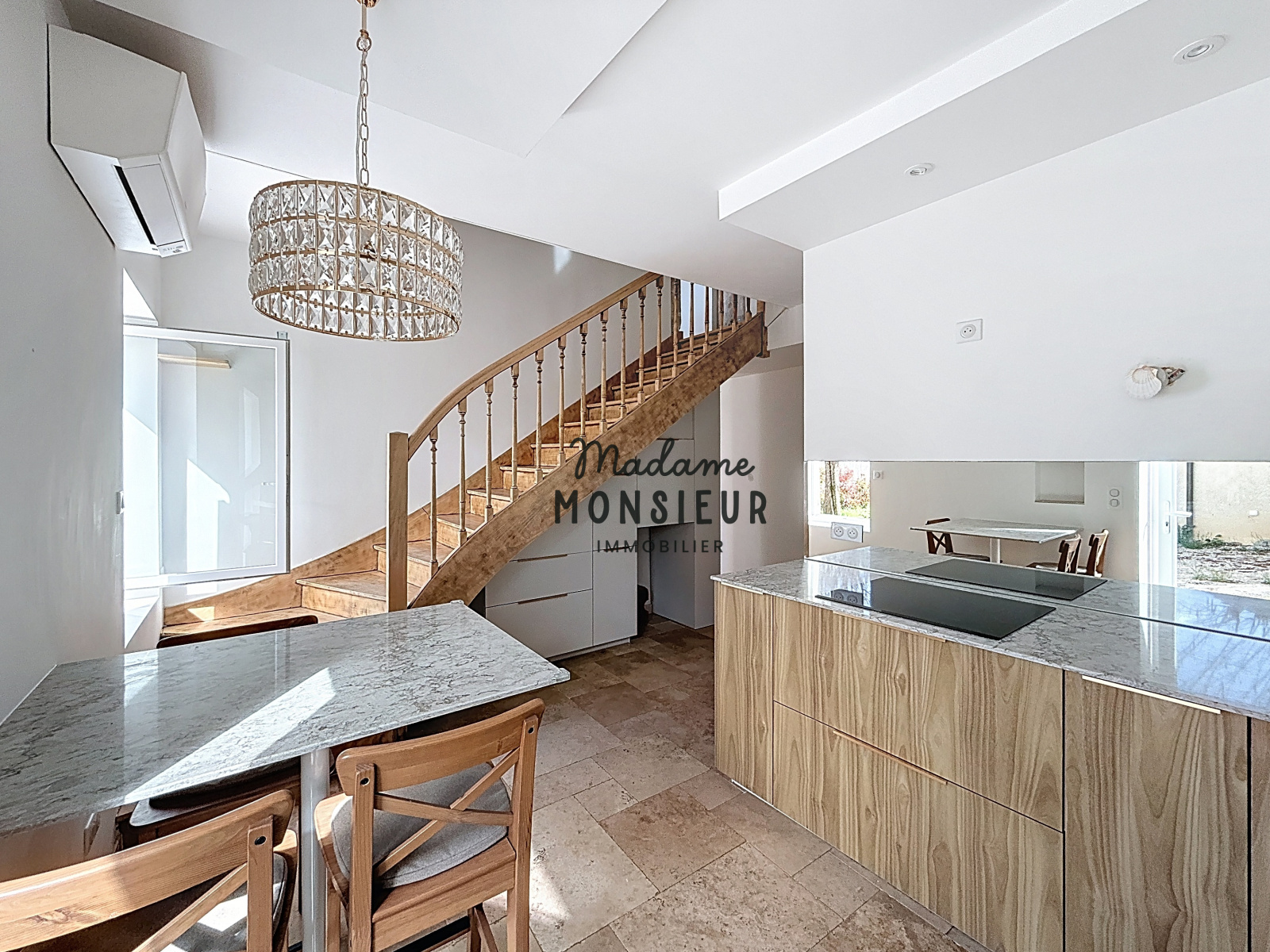 Elle se compose au rez-de-chaussée d’une pièce de vie lumineuse mettant en valeur une belle cheminée ancienne, ainsi que d’une cuisine ouverte, entièrement équipée et récemment installée. Une salle d’eau avec WC complète ce niveau.