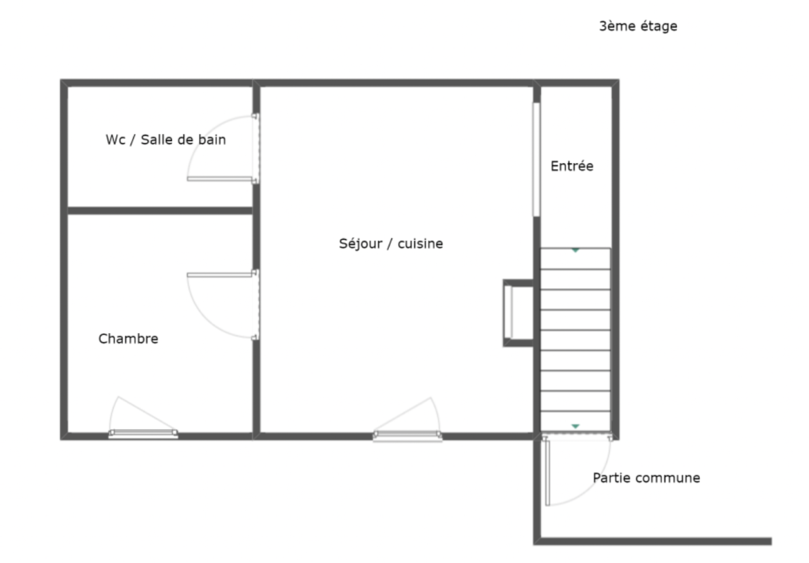 L’appartement se compose d’une pièce de vie lumineuse, d’une chambre et d’une salle d’eau moderne avec WC.