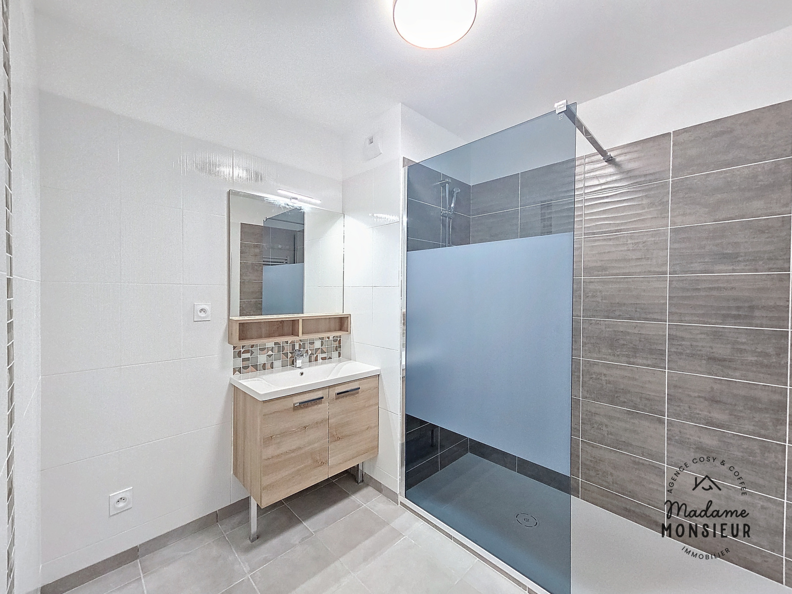 Ensuite, une belle salle d'eau avec receveur extra plat, un wc indépendant.