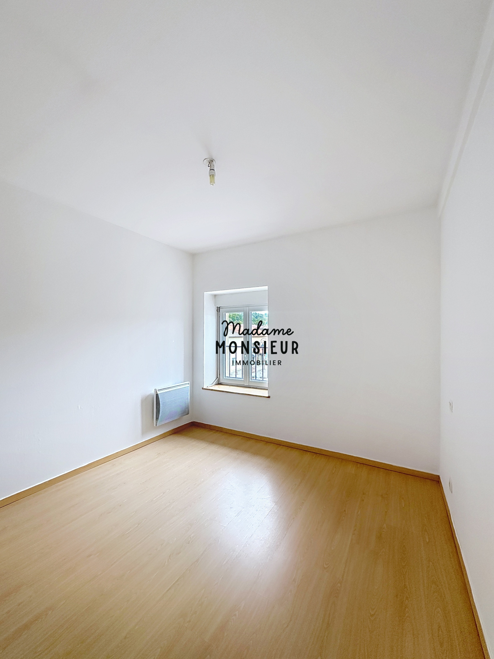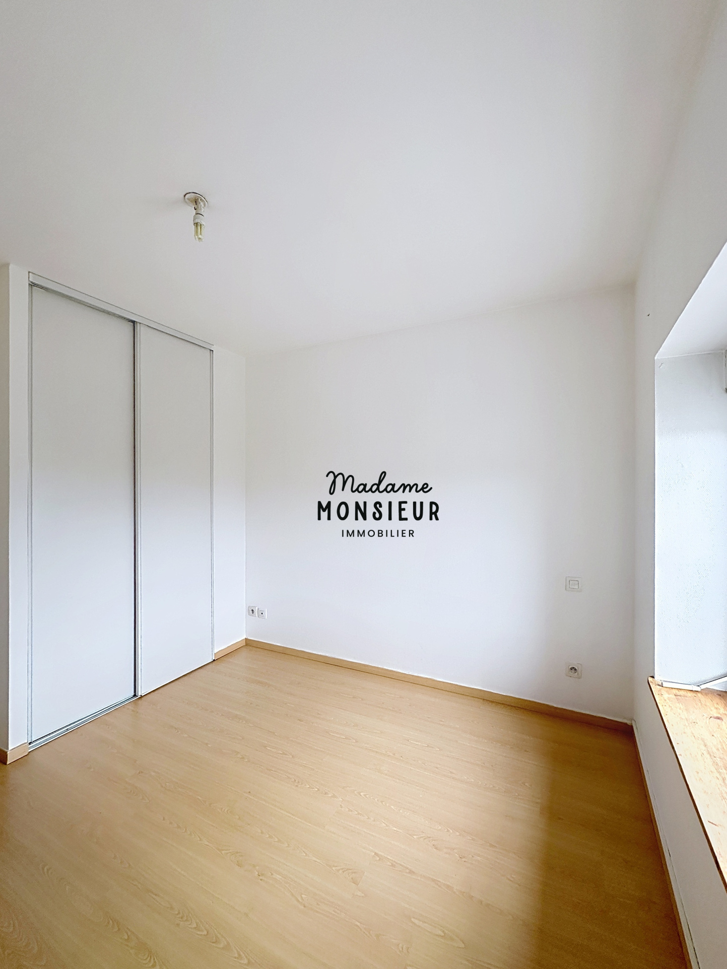 L’étage offre un pallier avec rangement, deux chambres dont une équipée d’un placard, et une salle d’eau fonctionnelle. L’appartement dispose également d’une cave privative au sein de la copropriété, idéale pour le stockage.