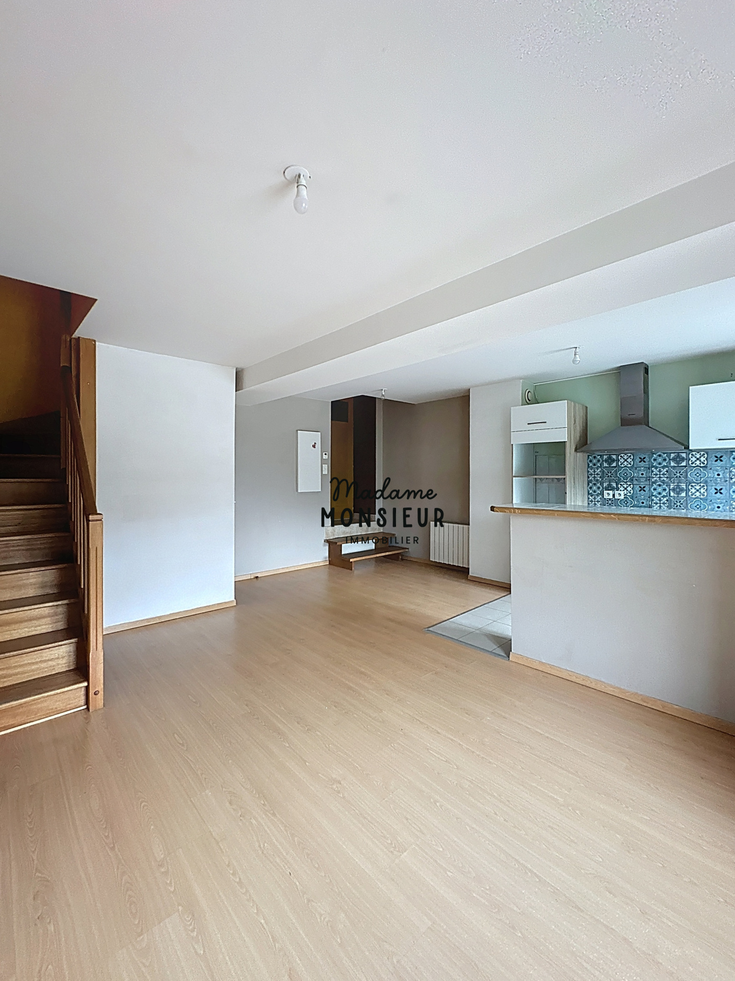 À louer, en plein cœur de Saint-Savin, un appartement en duplex situé au premier étage d’une petite copropriété calme. Dès l’entrée, quelques marches mènent à une pièce de vie lumineuse comprenant une cuisine semi-équipée ouverte sur l’espace salon, ainsi qu’un toilette séparé.