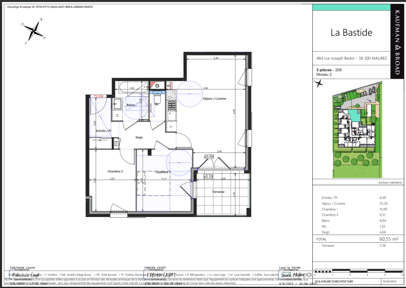 Dès l’entrée, un placard intégré offre un rangement pratique et mène vers une pièce de vie lumineuse comprenant un séjour/cuisine de 25,30 m². Le séjour s’ouvre sur une terrasse de 7,38 m², idéale pour profiter de l’extérieur.
