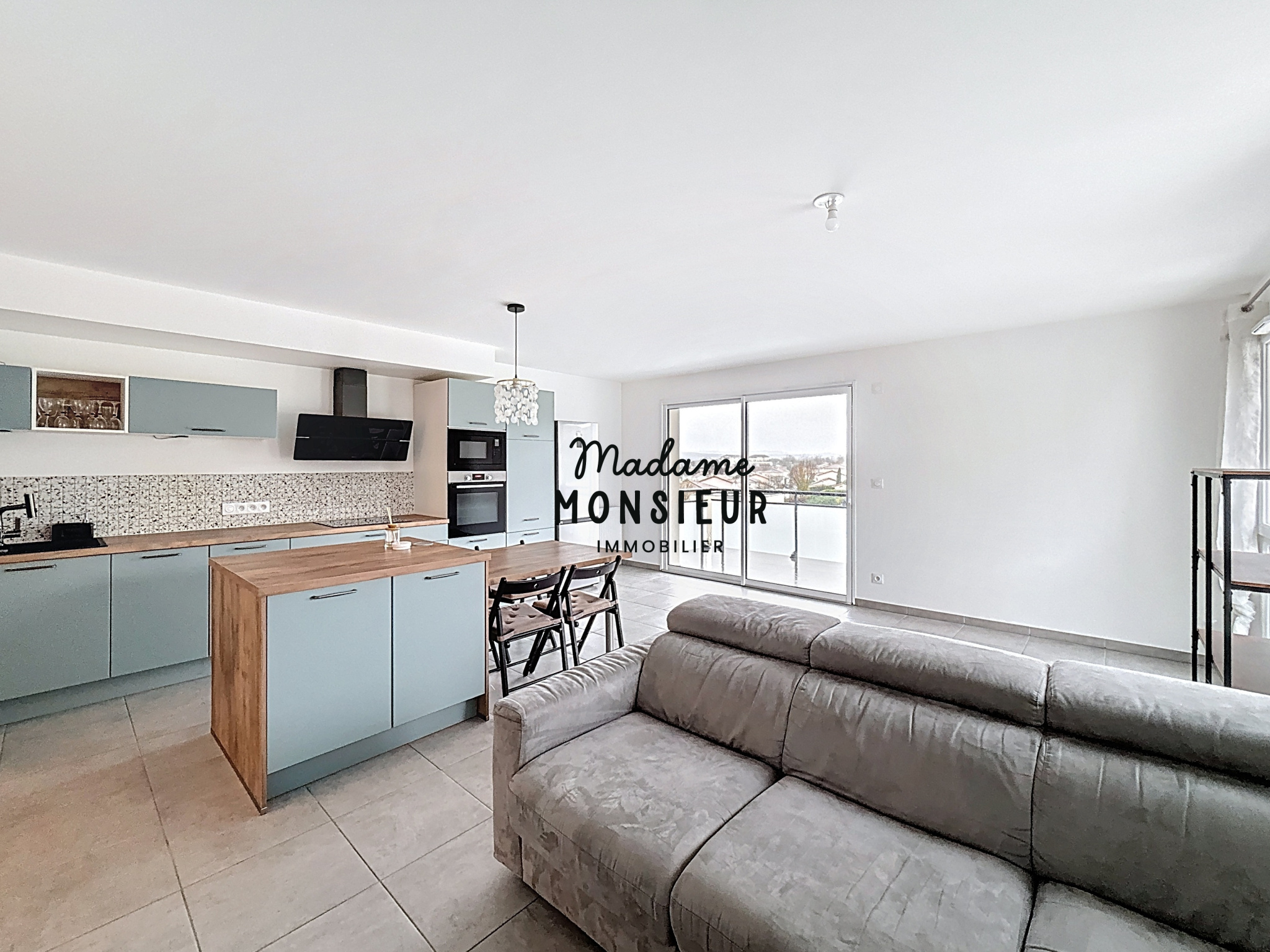 Dès l’entrée, vous découvrirez une agréable pièce de vie baignée de lumière, intégrant une cuisine ouverte entièrement équipée et meublée répondant aux attentes du quotidien. Cet espace s’ouvre sur un balcon exposé Ouest, offrant une vue dégagée sur la ville et permettant de profiter pleinement des fins de journée en extérieur.