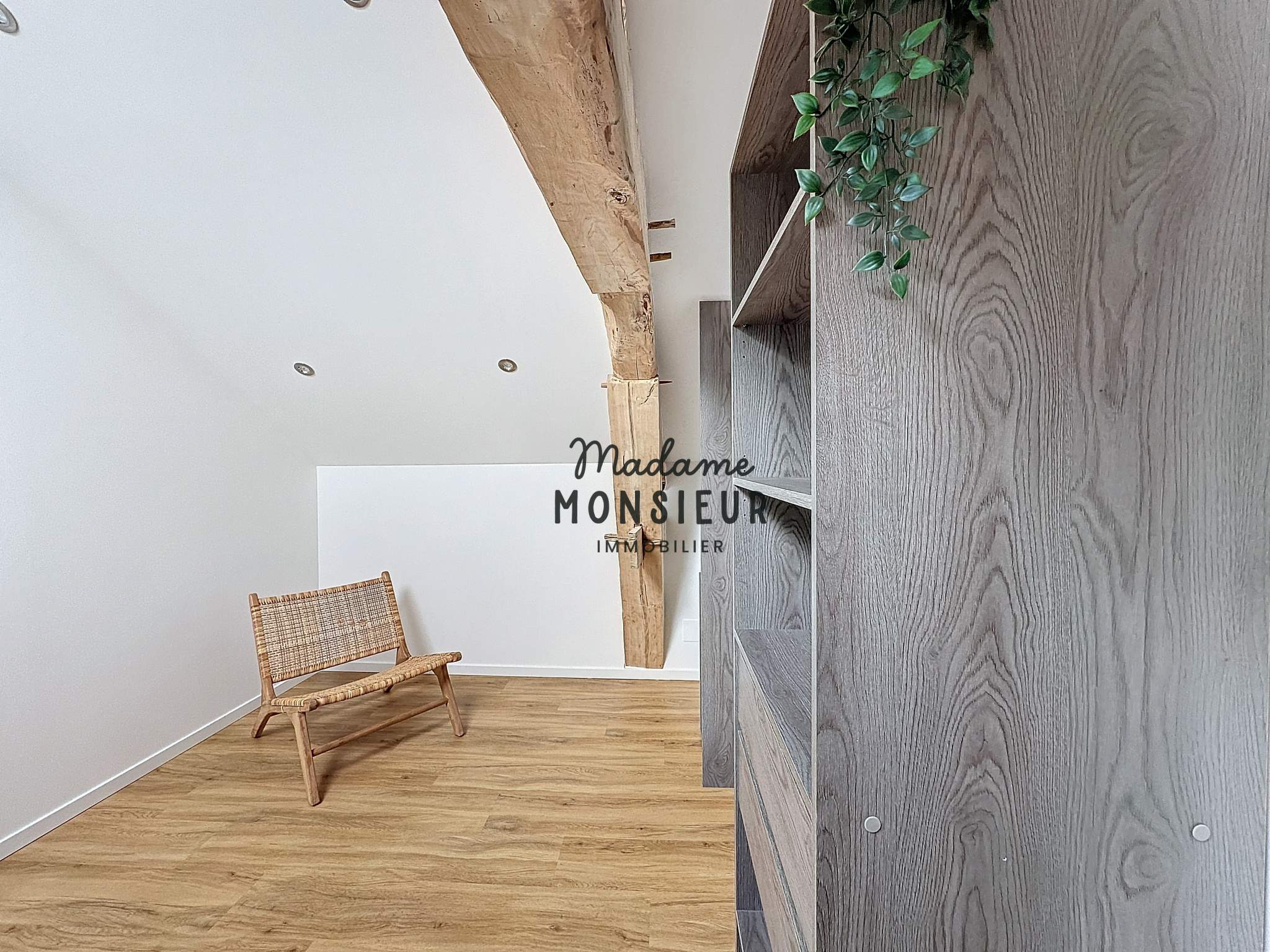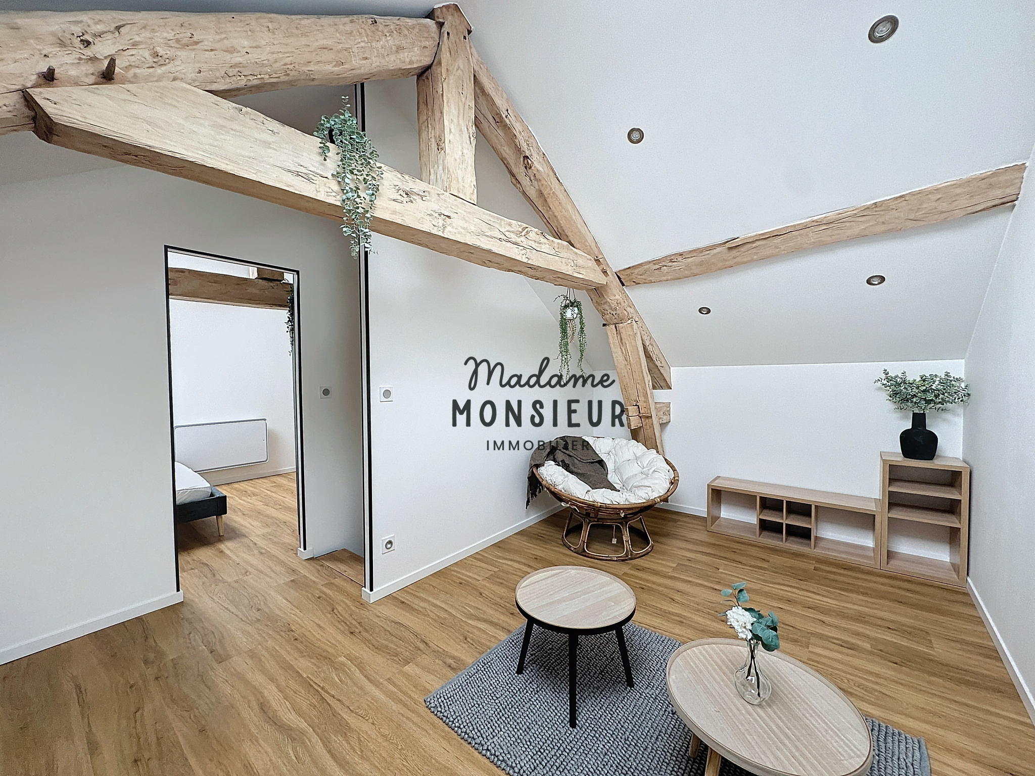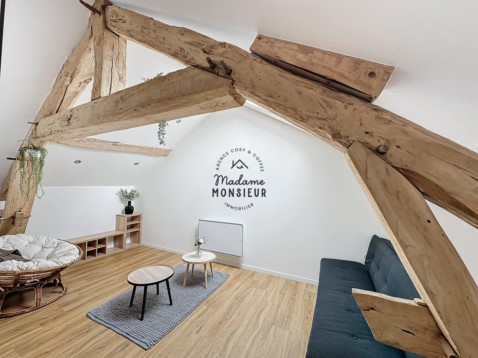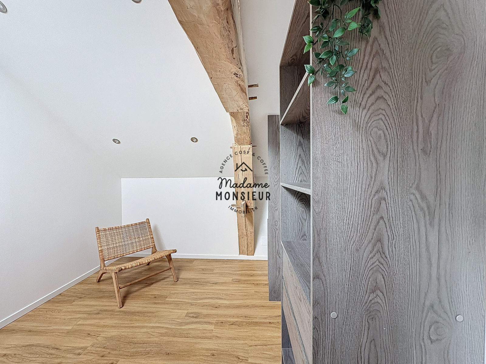 Le dernier étage offre une grande polyvalence d’aménagement grâce à un espace aux poutres apparentes, permettant une adaptation selon vos besoins et envies, accompagné d’une deuxième chambre spacieuse.