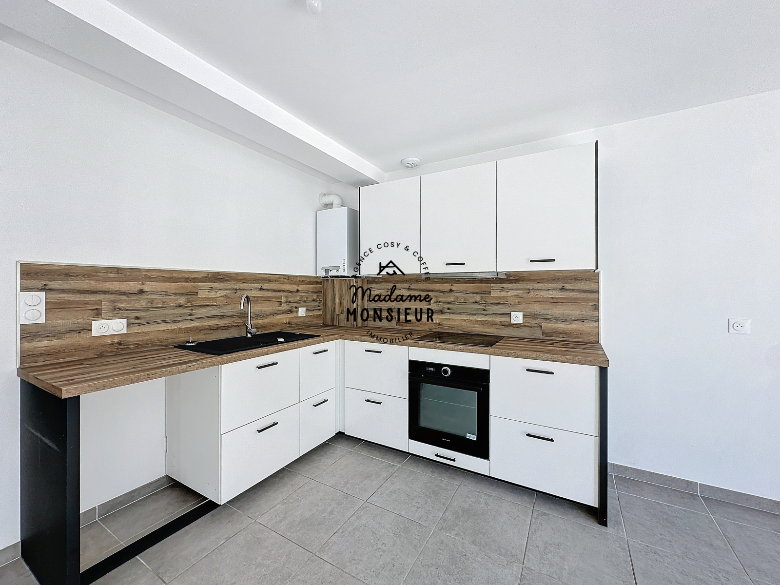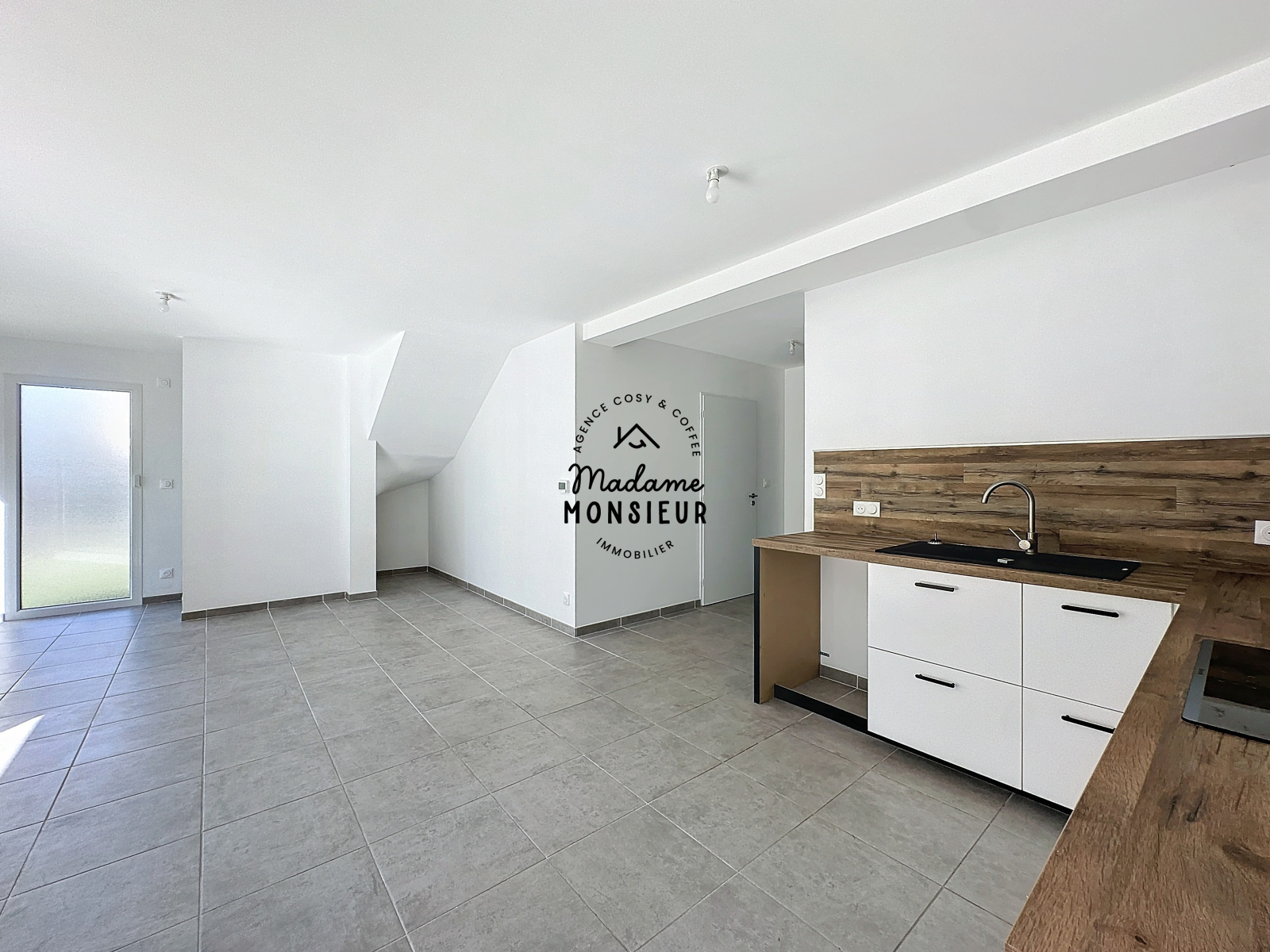 •Une pièce à vivre lumineuse avec une cuisine équipée et meublée, donnant sur une terrasse de 12 m².