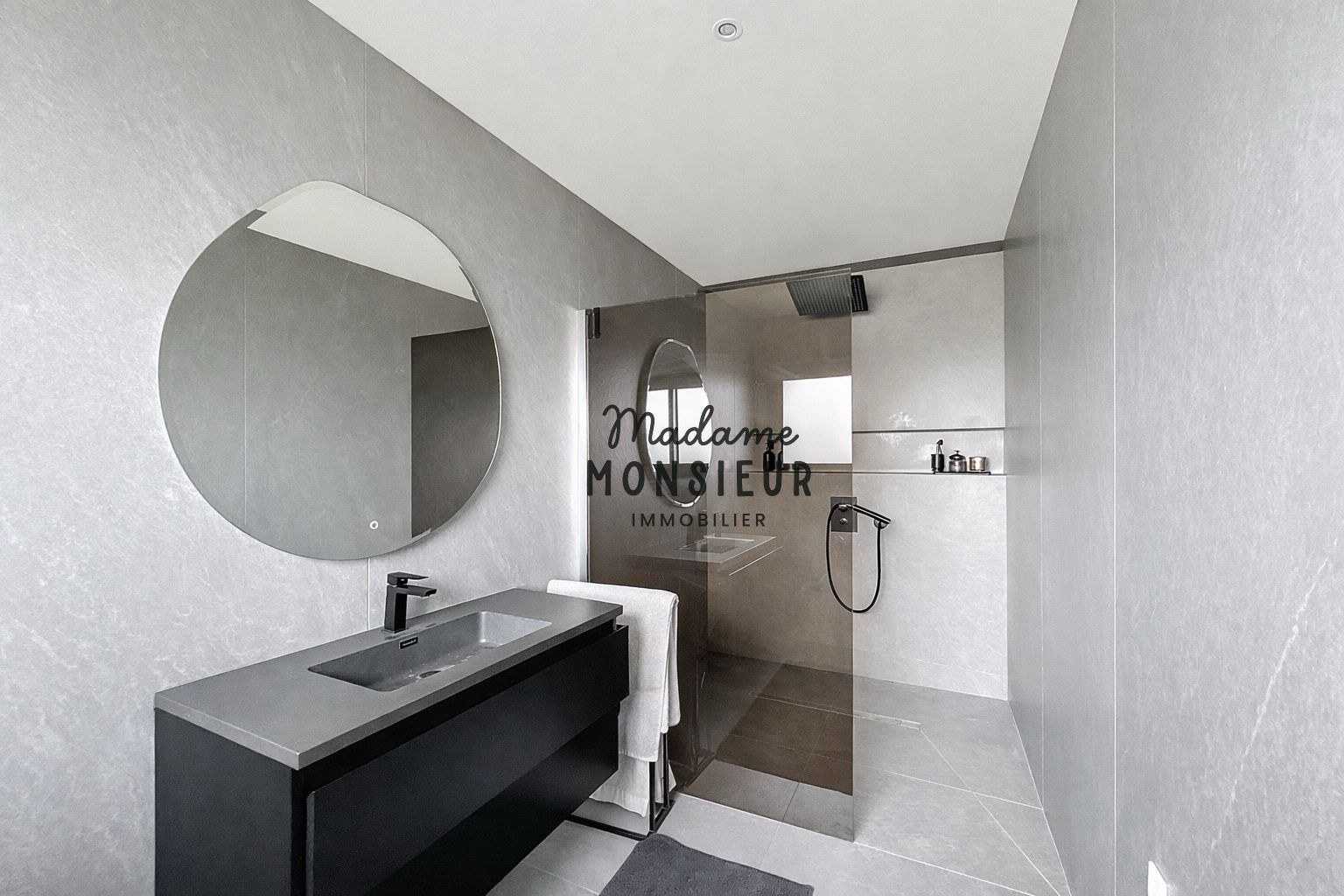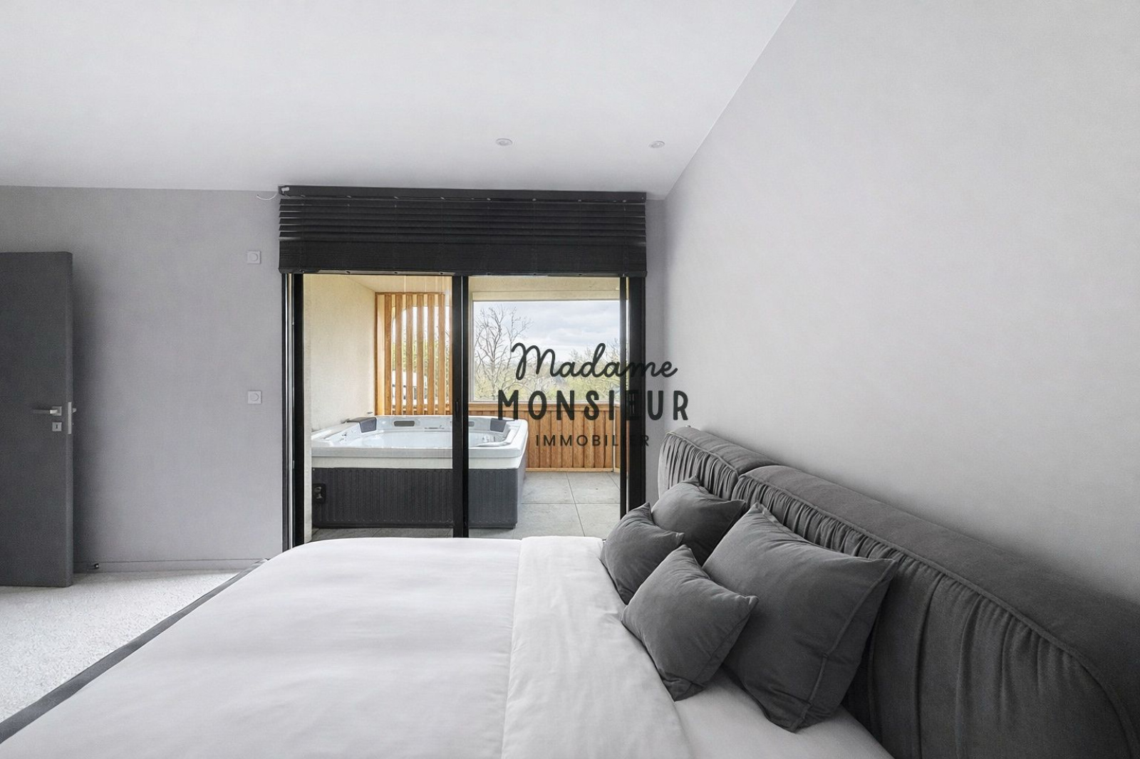 À l’étage, l’atmosphère devient plus intime. Un salon secondaire, pensé comme un espace détente, distribue les chambres. La suite parentale de plus de 30 m² offre un véritable cocon privé avec son jacuzzi. Deux autres chambres, une salle de bain, une buanderie, un balcon ainsi qu’un accès au toit du garage complètent ce niveau, laissant entrevoir un esprit rooftop aménageable.