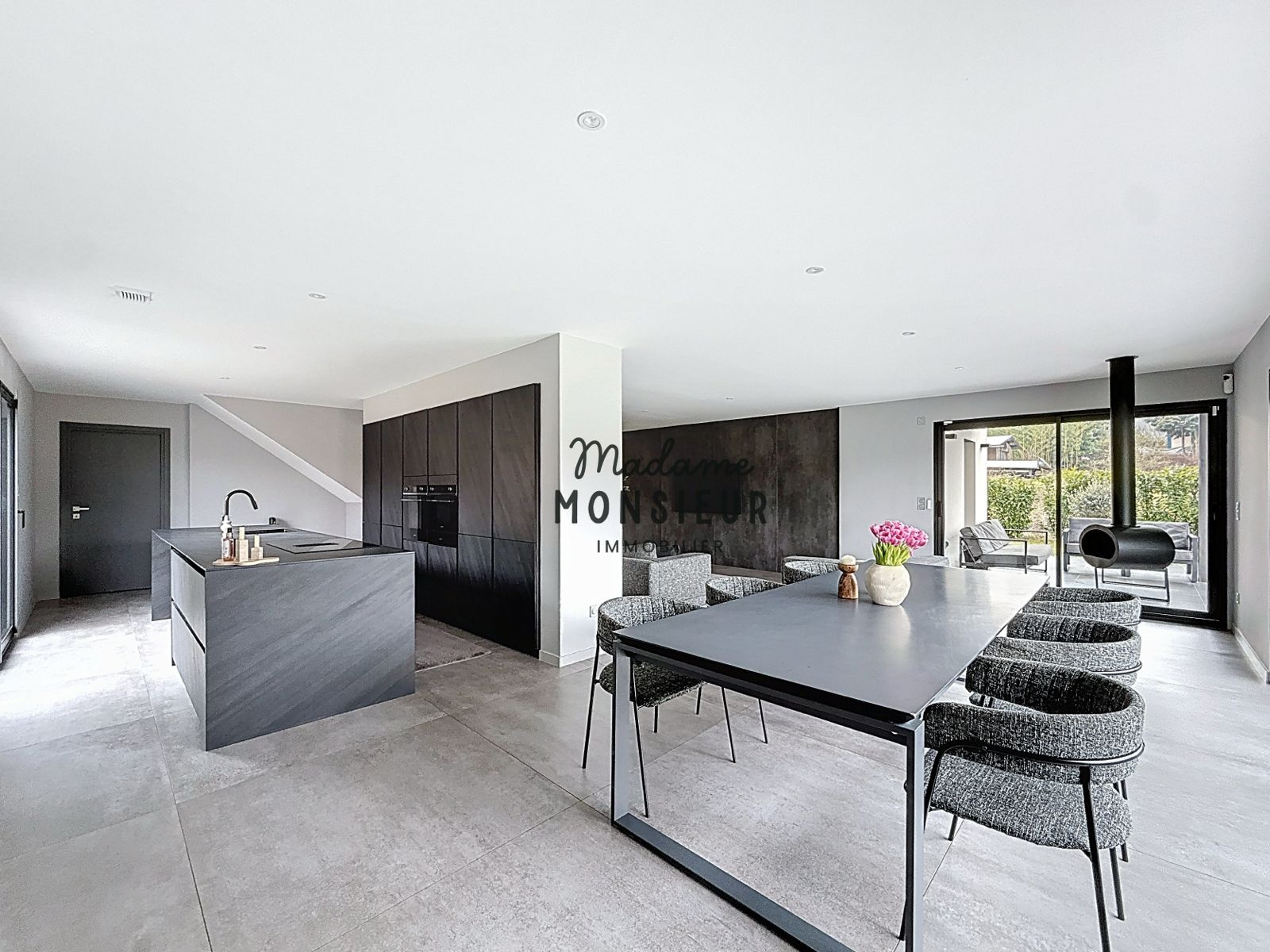 À quelques minutes de Thonon-les-Bains, du Léman et de la frontière suisse, sur les hauteurs très prisées d’Allinges, cette villa d’architecte contemporaine incarne une vision exigeante et rare de l’habitat moderne : lignes pures, volumes généreux, circulation fluide entre intérieur et extérieur, et une conception pensée pour un confort absolu.