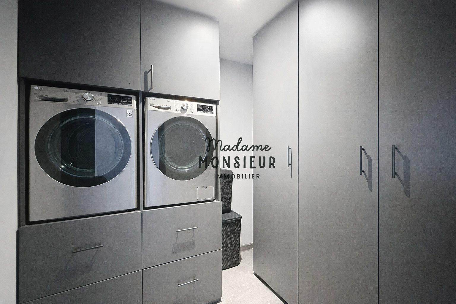 À ce niveau, une chambre avec salle d’eau permet une vie de plain-pied, idéale pour recevoir ou pour un confort quotidien absolu. Cellier, local technique et nombreux rangements témoignent d’une conception rigoureuse et fonctionnelle.
