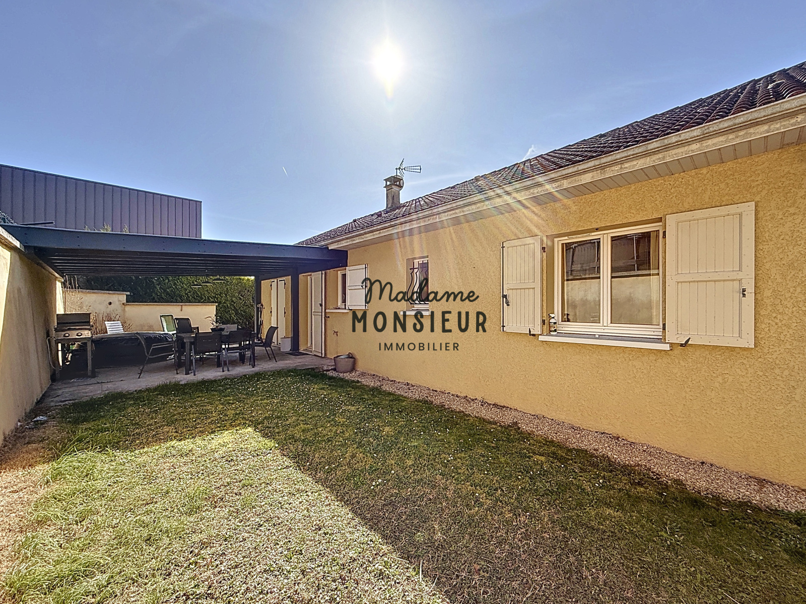 À l’extérieur, le jardin arboré et la terrasse invitent à la détente, tandis que l’espace de stationnement facilite le quotidien.