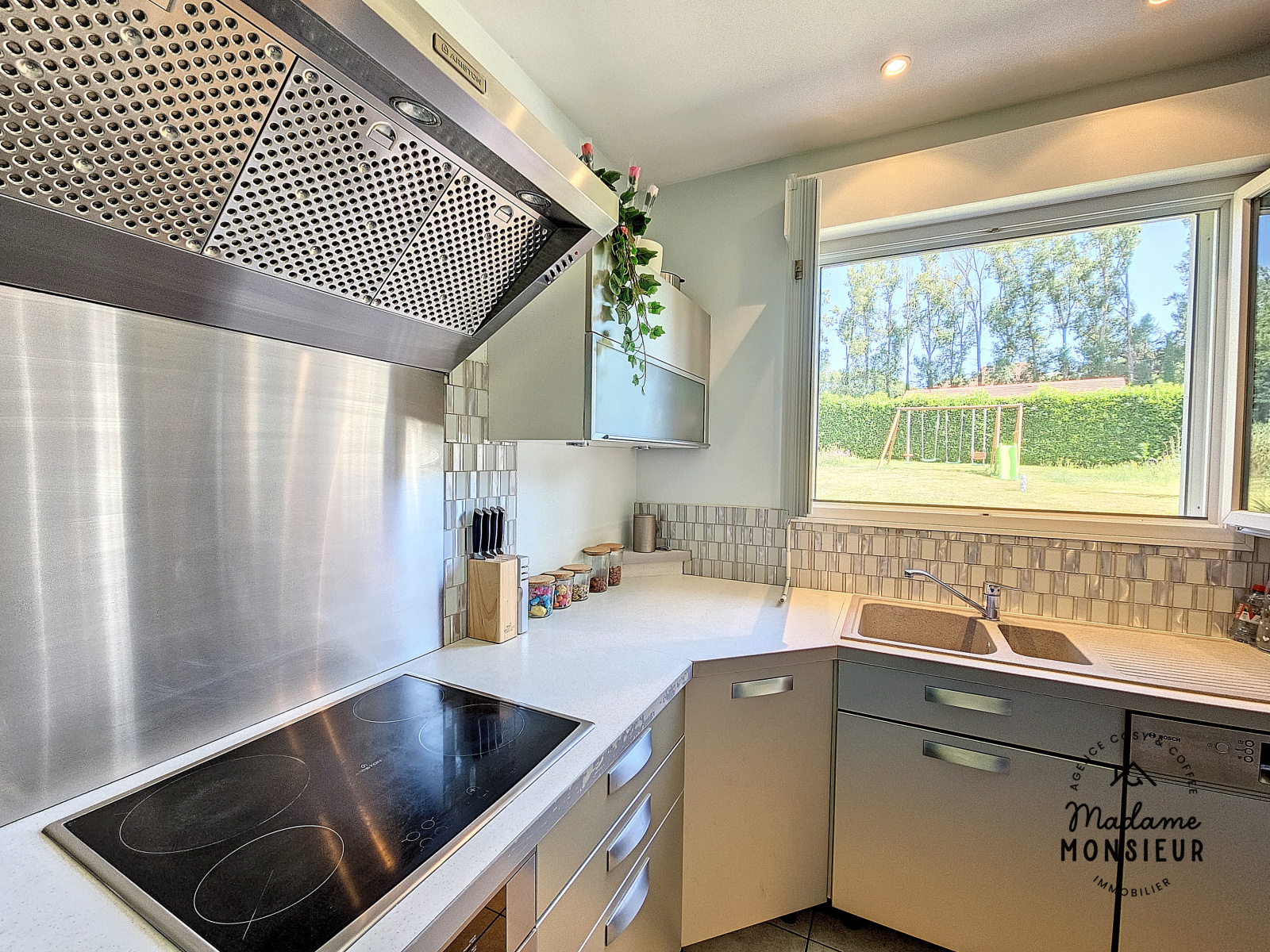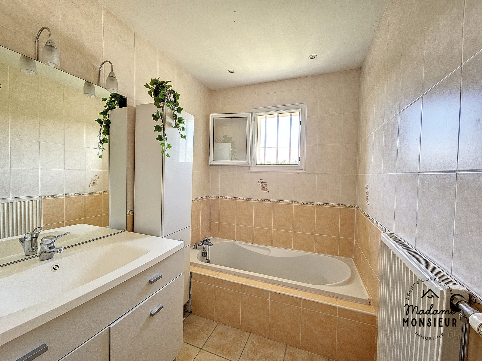 Celle-ci se compose au rez de chaussée d'un salon séjour de 35m2 traversant ; avec accès direct au jardin, d'une cuisine semi-ouverte aménagée, un toilette indépendant, une salle de bain, 3 chambres avec placards ainsi qu'une buanderie.