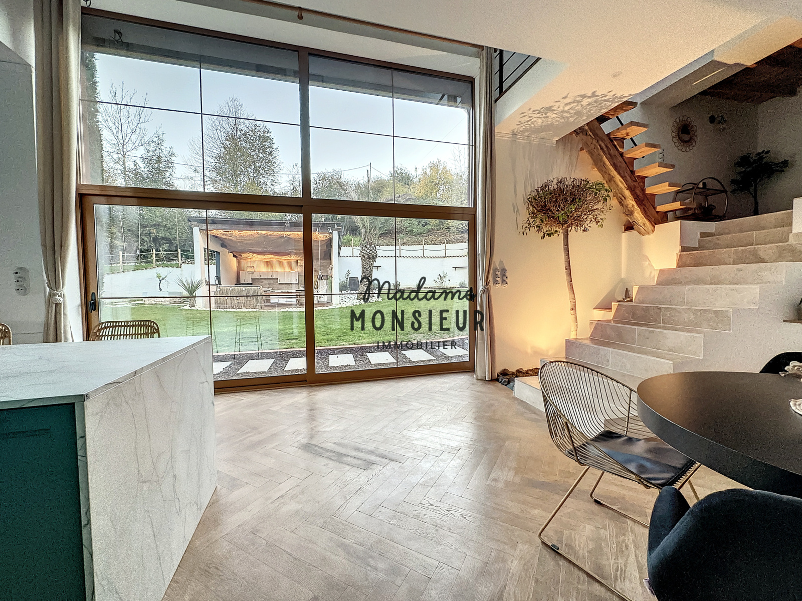 Dès l'entrée, cette demeure vous séduira par ses vastes espaces, ses matériaux haut de gamme et son état impeccable.
