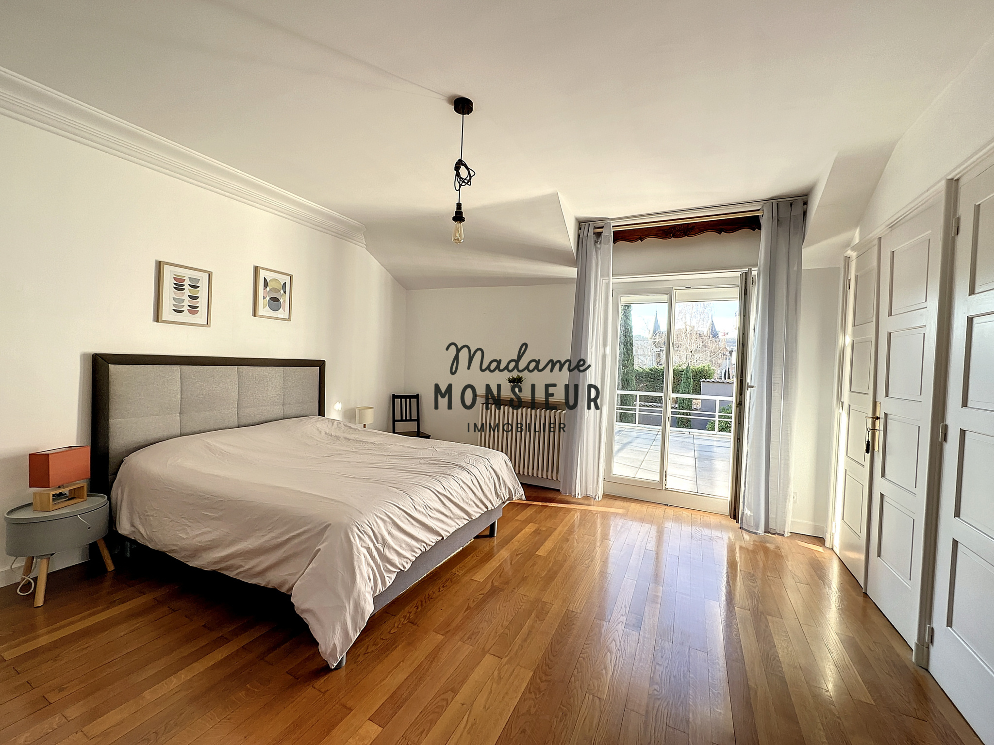 À l’étage, un dégagement dessert un bureau, trois grandes chambres dont deux avec terrasses privatives de 31 m² et 9 m², un WC indépendant ainsi qu’une seconde salle d’eau, une quatrième chambre spacieuse de 22,40 m² complète cet espace nuit confortable.