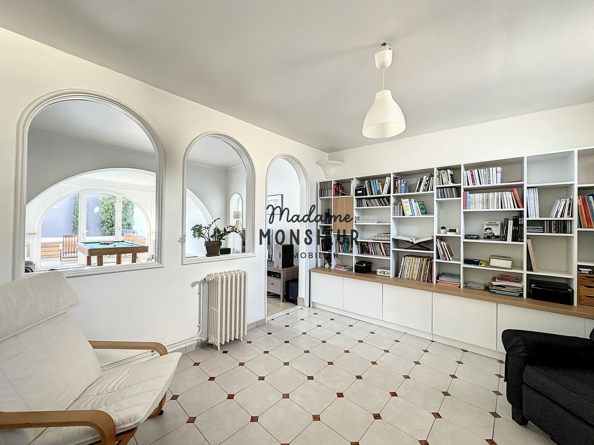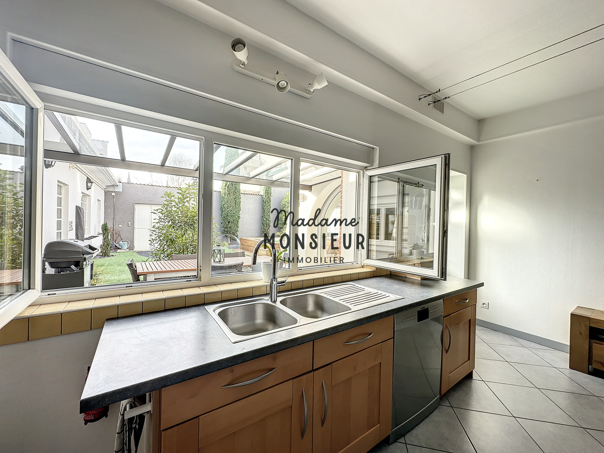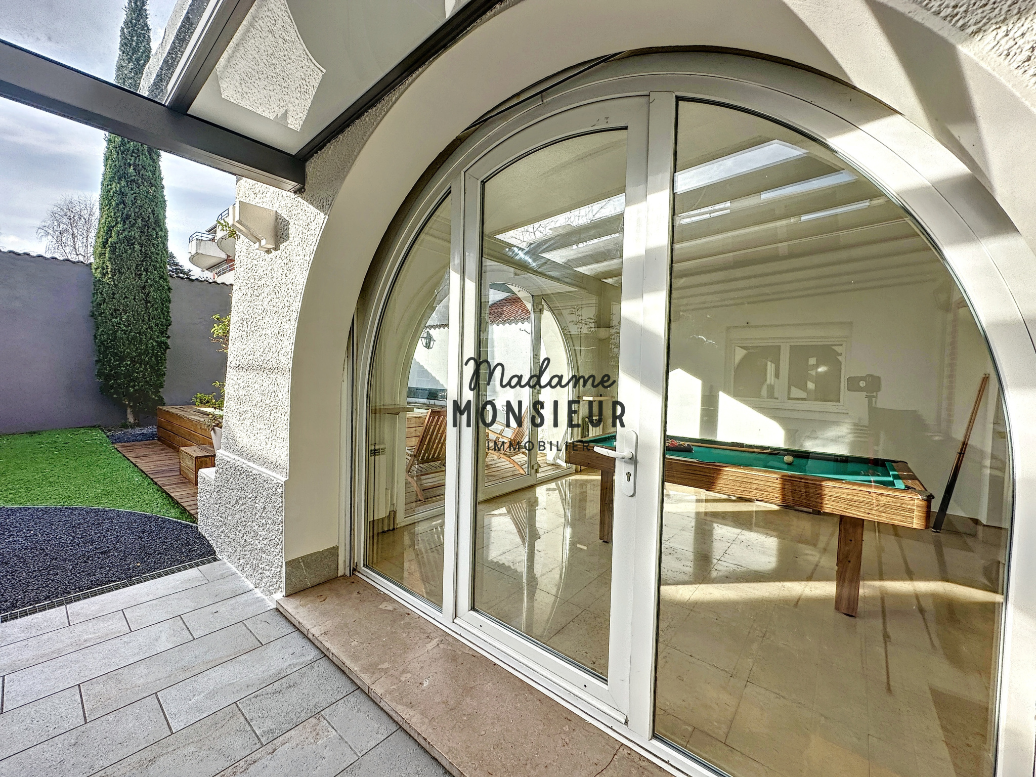 Le jardin pensé pour la détente, propose une belle piscine, une terrasse plein sud couverte par une pergola, ainsi qu'une dépendance attenante de 31m2 actuellement aménagée en salle de musique et atelier mais pouvant également faire office d'un local pour une profession libérale avec une entrée indépendante. 2 places de parkings privées avec borne éléctrique complètent ce bien.