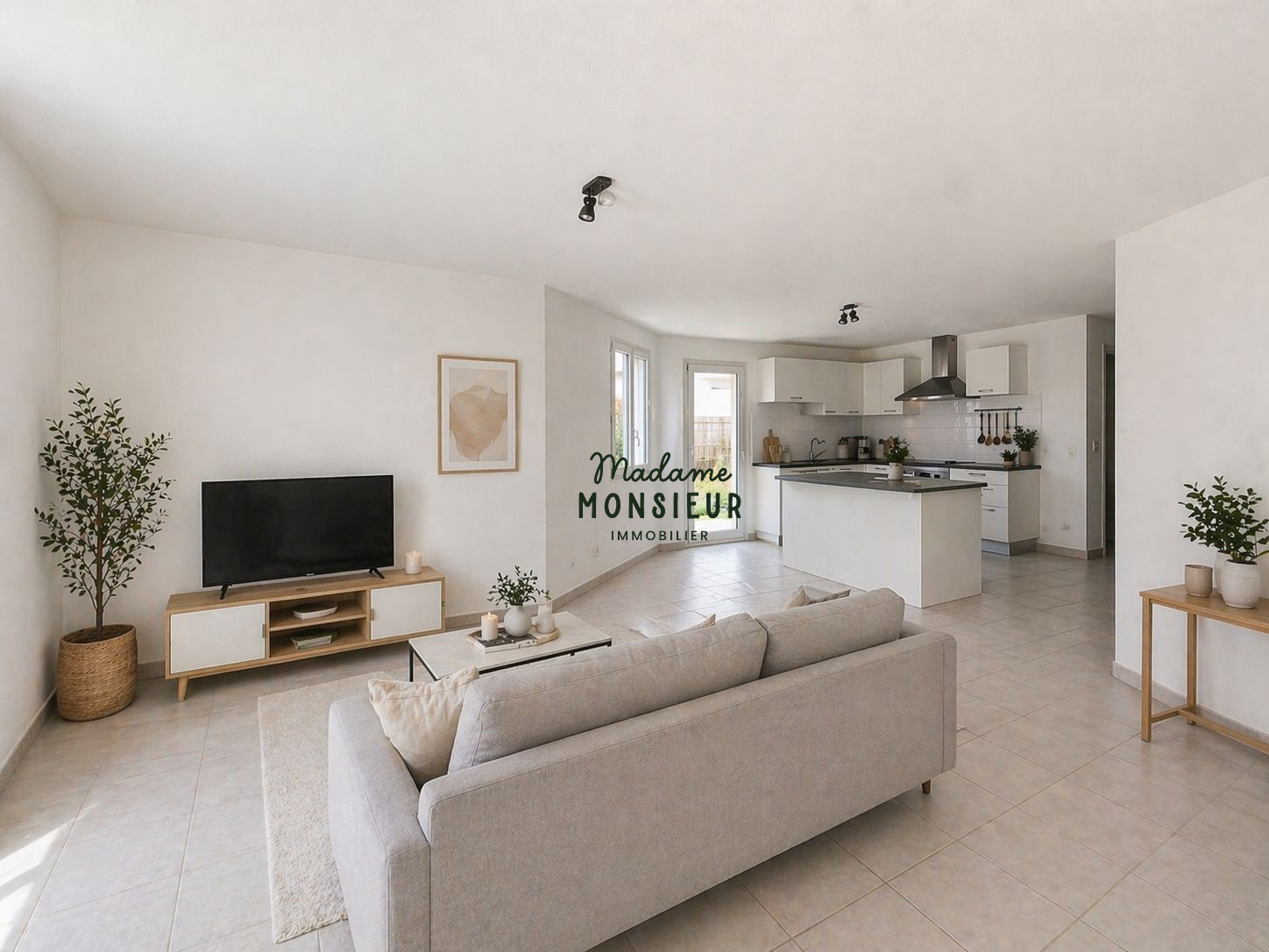 Implantée sur un terrain de 383 m², elle développe 103 m² habitables intelligemment agencés. Dès l’entrée, vous serez séduit par une pièce de vie spacieuse et baignée de lumière, intégrant une cuisine ouverte conviviale, avec un accès direct au jardin, un véritable atout pour les moments de détente en extérieur.