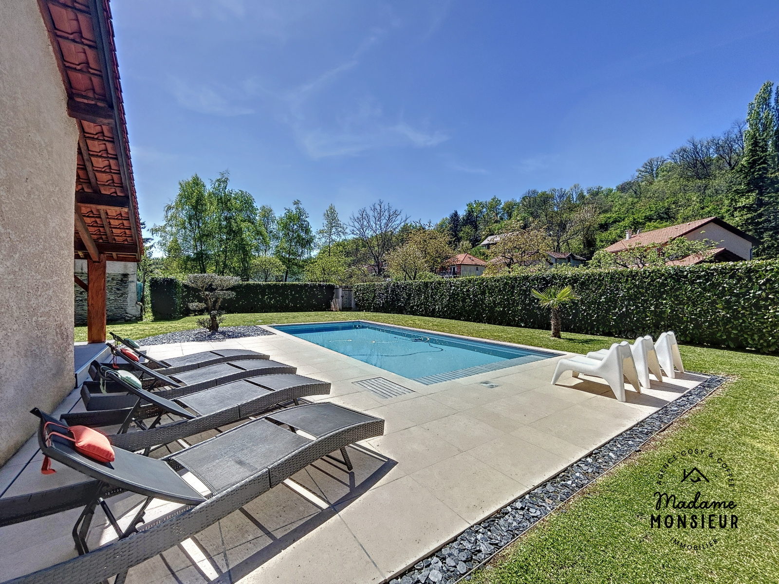 Venez découvrir en exclusivité avec Madame Monsieur Immobilier sur la commune de Nivolas-Vermelle, cette belle dauphinoise entièrement rénovée. Le calme de son environnement et de ses extérieurs sont propices à une atmosphère apaisante et de bien être, sa piscine est une invitation à ne passer que de beaux et agréables moments de détente. Son bel espace pool house doté de sa cuisine d’été et de son barbecue vous inspireront de joyeux et réconfortants instants en famille et entre amis. Vous saurez en apprécier tout le cachet de l’ancien (pierres, poutres…) qui continuera de vous convaincre par sa touche d’authenticité.Vous apprécierez l’ambiance chaleureuse des pièces de la maison baignées de lumière. La découverte de l’espace de vie vous confortera dans votre coup de coeur, ses nombreuses et grandes baies vitrées vous donneront la sensation de profiter en permanence des extérieurs et des intérieurs de la bâtisse à la fois.Vous découvrirez une cuisine à l’agencement inspirant la convivialité autour de bons repas. Le coin salon vous charmera par sa belle hauteur sous plafond, par la chaleur et la noblesse de son parquet chevron au sol. Vous vous imaginerez déjà passer des soirées reposantes sur votre canapé... Enfin, lors de la découverte de la magnifique suite parentale, vous serez séduit(e) par le charme de l’ancien mêlé avec juste équilibre à l’élégance du moderne. Vous saurez apprécier cette pièce refuge par excellence, ses teintes douces et ses lignes épurées qui en font un écrin cosy qui ne vous laissera pas d’autre choix que d’être définitivement conquis(e). Une visite s’impose? N’hésitez pas à contacter Maïlis TILLOUS-BORDE au 0630559623 RSAC 885183848