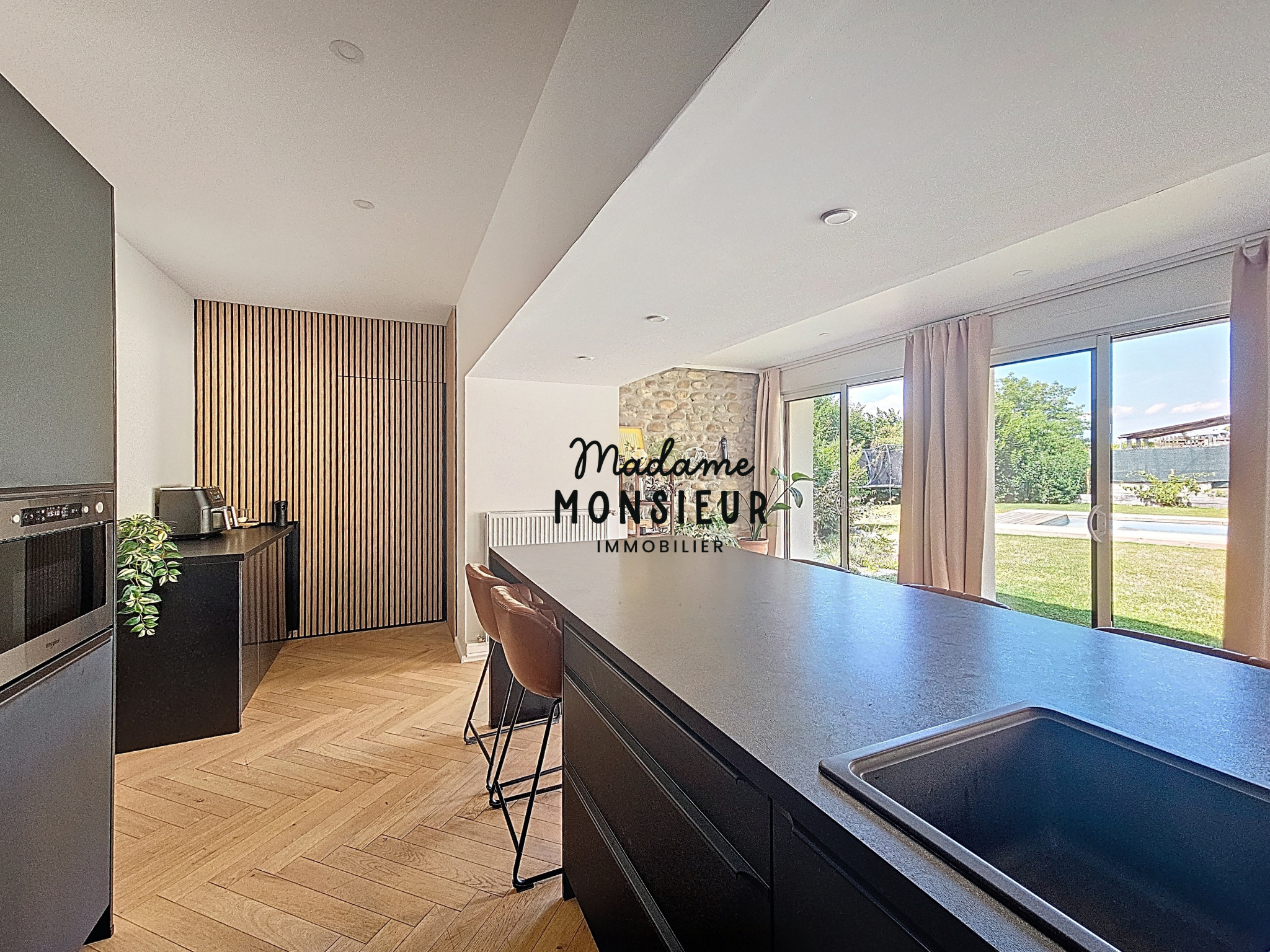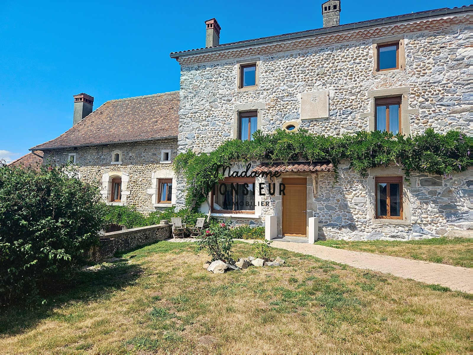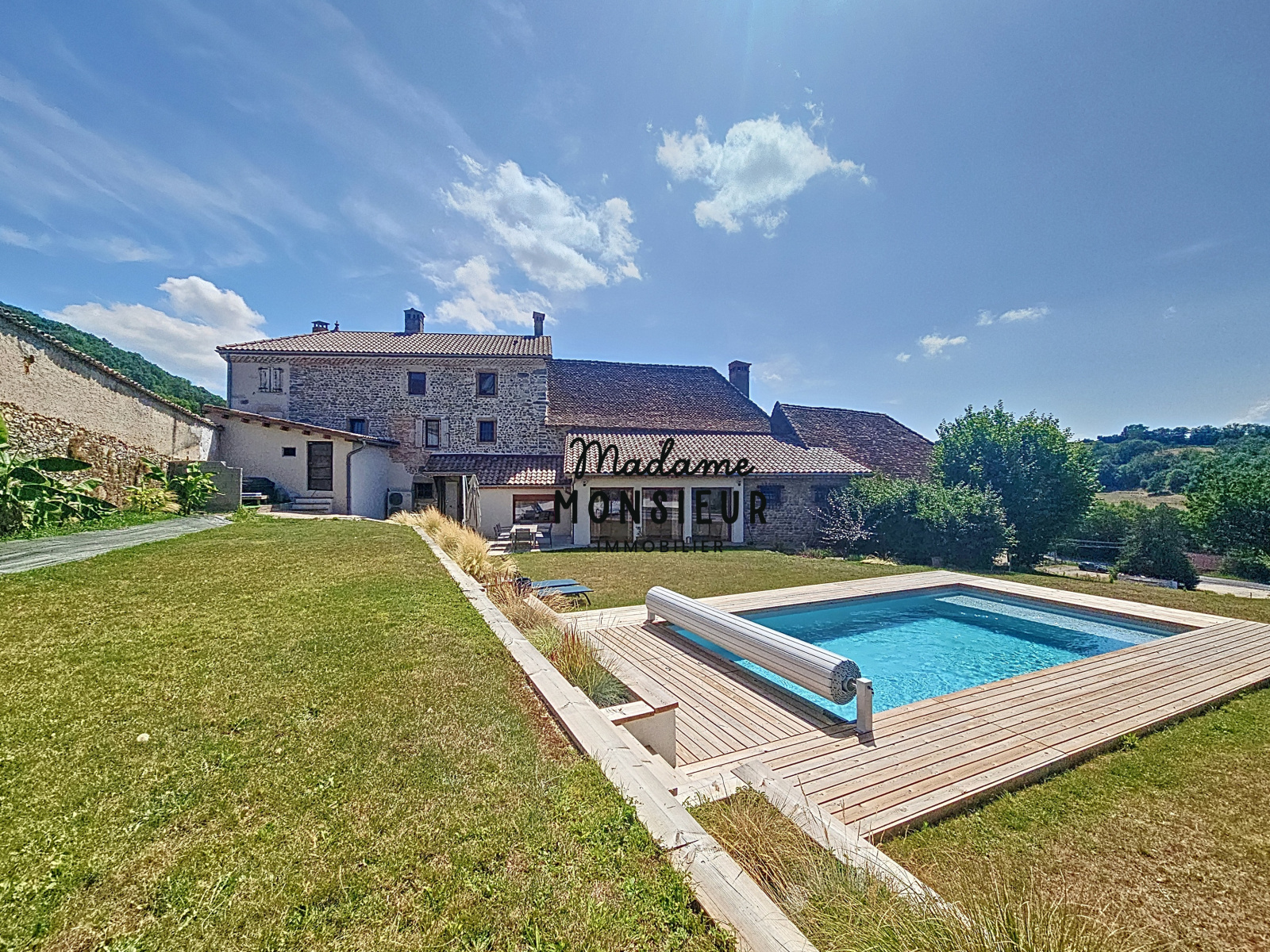 Une exclusivité par Anaëlle de "Madame Monsieur Immobilier " Dans un environnement champêtre préservé, à Montrevel, découvrez cette superbe propriété en pierre de 305m² habitables, nichée sur un terrain paysagé de 2149m². Cette demeure de charme conjugue volumes généreux, prestations soignées et confort contemporain. Au rez-de-chaussée, une vaste entrée mène d'une part à un salon-séjour, prolongé par une cuisine AVIVA entièrement équipée et sa véranda attenante apportant un maximum de luminosité. En continuant, vous serez séduits par la salle de réception, sublimée par son poêle à bois et sa hauteur sous plafond de 4,70m. D'autre part, une élégante suite parentale avec dressing et salle d'eau complète ce niveau. À l’étage, deux belles chambres, un bureau et une salle de bains moderne avec douche, baignoire et toilette, composent l’espace nuit. Le second étage propose trois pièces supplémentaires, à aménager selon vos préférences, idéales pour une grande famille ou recevoir. La propriété bénéficie également d’un sous-sol de plus de 70m², d’un garage indépendant, d’un abri voiture, d’une cave et d’un espace de combles aménageable de 45m². À l’extérieur, vous profiterez d’un jardin arboré agrémenté d’une piscine au sel 8x4?m, diverses terrasses afin de vous offrir un maximum d'espace. 2 sources d'eau sont présentes sur le terrain. Parmi les travaux réalisés: réfection des toitures, isolation des combles et des rampants, menuiseries PVC, panneaux solaires ainsi que les façades. Un bien rare sur le secteur, alliant charme, volumes et cadre de vie privilégié. Pour toutes informations complémentaires et pour organiser une visite contactez Anaëlle ALCARAZ EI RSAC 977 524 305 au O7.77.00.20.94