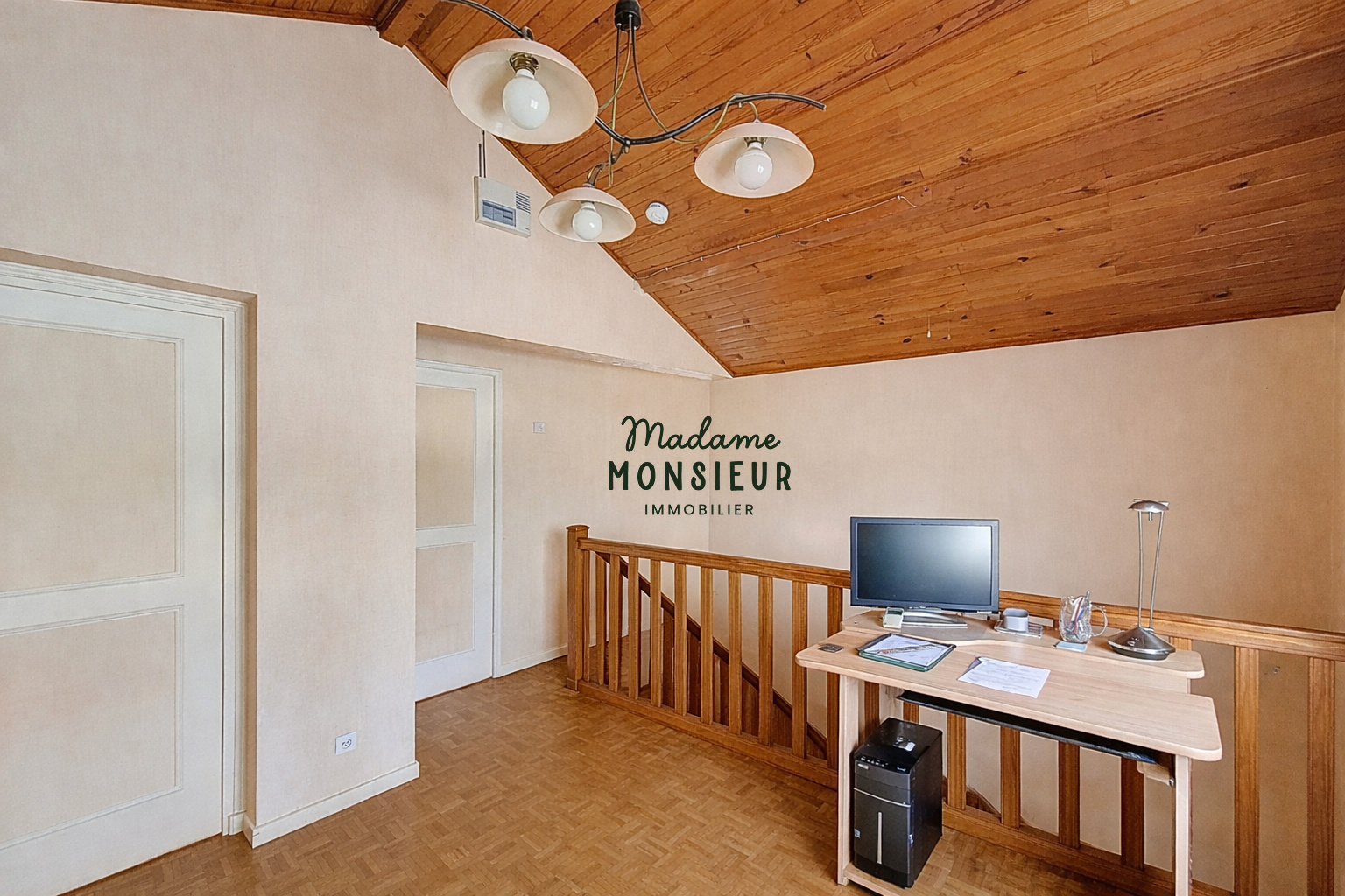 La maison dispose également d’un sous-sol complet d’environ 85 m² comprenant un double garage, un atelier, une cave et une buanderie.