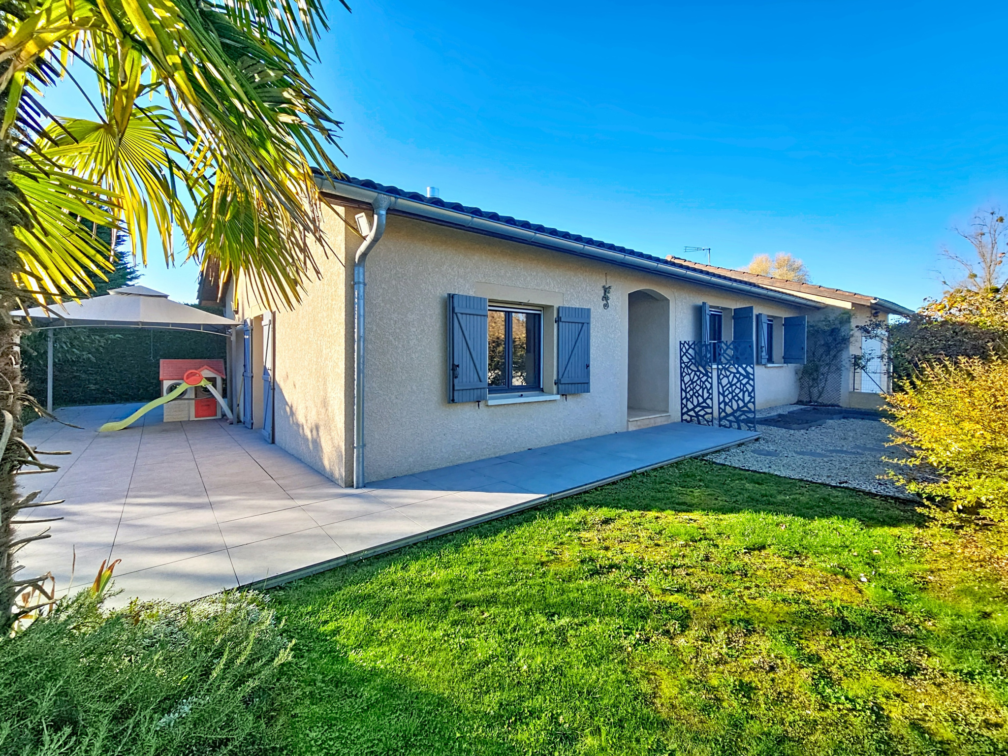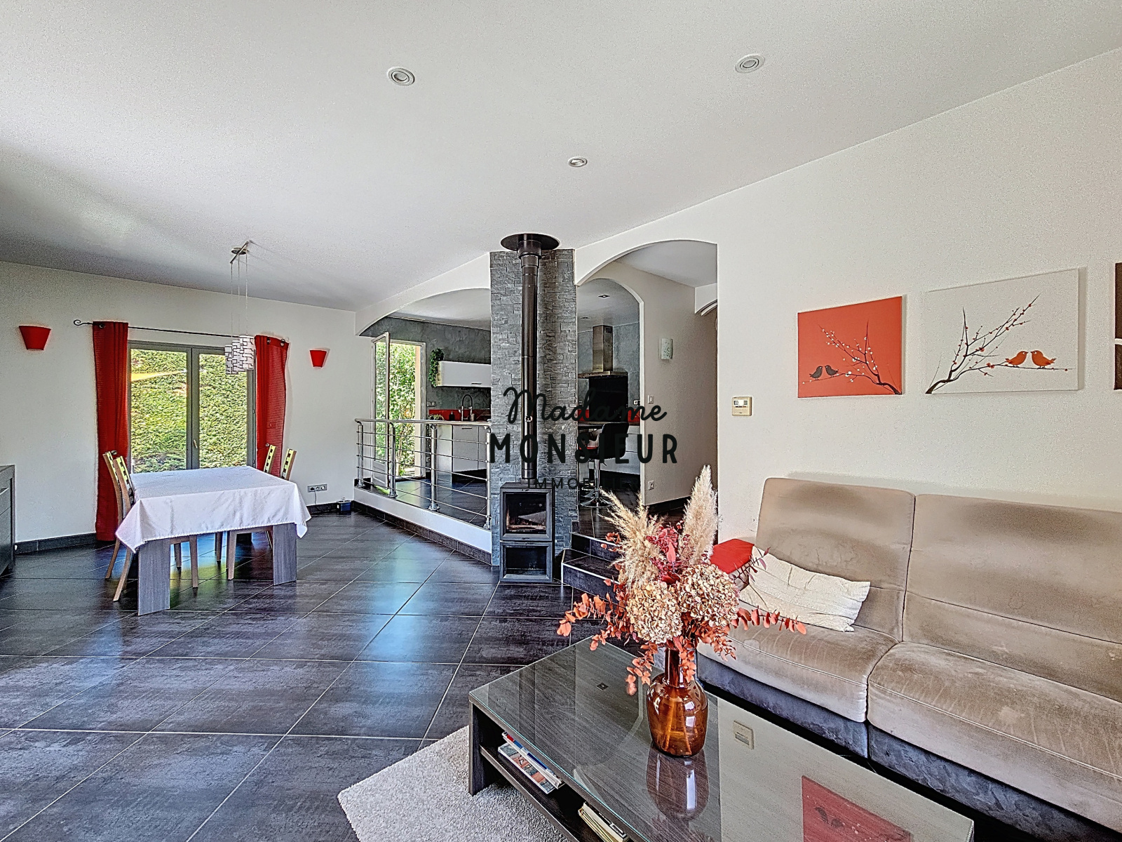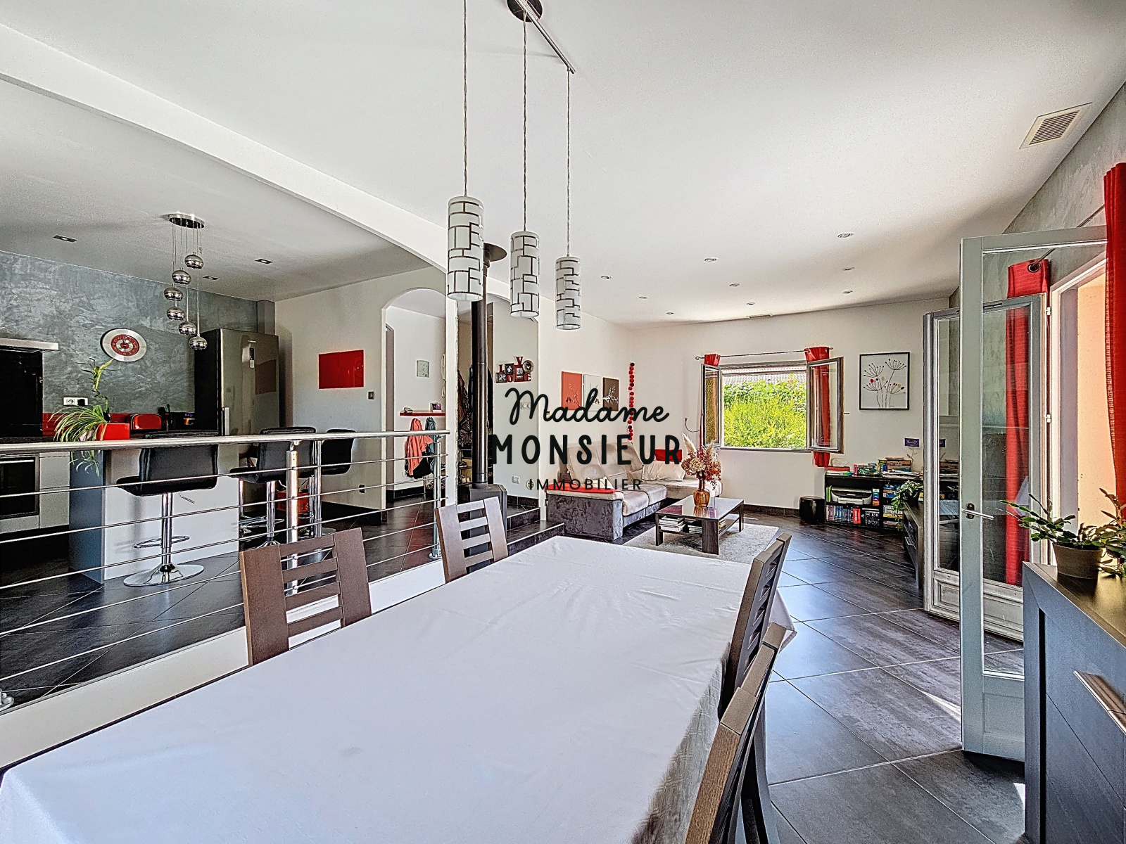Une co-exclusivité par Anaëlle de "Madame Monsieur Immobilier " Située dans la charmante commune de Saint-Savin, au sein d'un terrain arboré de 1 084 m², cette maison offre un cadre de vie paisible en restant proche des axes routiers et des commerces. Elle se compose d'une entrée donnant sur la pièce de vie, vaste et baignée de lumière, avec sa belle hauteur sous plafond et son agencement en demi-niveau, qui lui confèrent charme et volume. La cuisine, ouverte sur celle-ci, est moderne, signée Aviva et pourvue de nombreux rangements. Coté nuit, elle se compose de trois chambres, auxquelles s’ajoute un garage actuellement aménagé en bureau et buanderie. Cet espace peut aisément être transformé en quatrième chambre, suite parentale ou en studio indépendant, selon vos besoins. À l’extérieur, le terrain généreux est agrémenté d'une terrasse sur plots avec sa pergola qui permets de profiter des journées ensoleillées en toute tranquillité, dans un ensemble cloturé et arboré. Un abri de jardin et un terrain de pétanque viennent compléter les aménagements extérieurs. Côté confort : les combles ont été isolés et le système de chauffage associe un poêle à bois et une pompe à chaleur réversible centralisée, pour un bien-être optimal toute l’année. Pour d'autant plus de praticité, la maison dispose de l'aspiration centralisée. Chaleureuse, fonctionnelle et pleine de potentiel, cette villa est une belle opportunité pour ceux qui recherchent un lieu de vie agréable et familiale, proche des commodités.