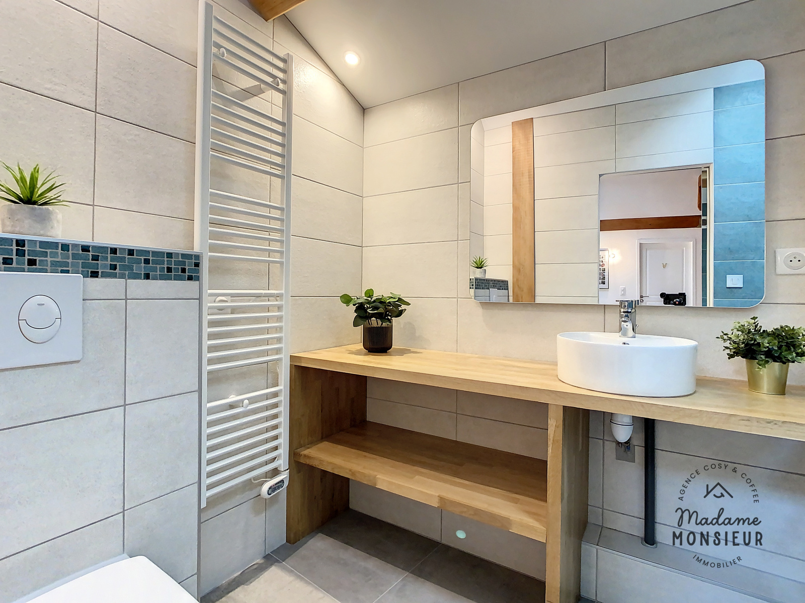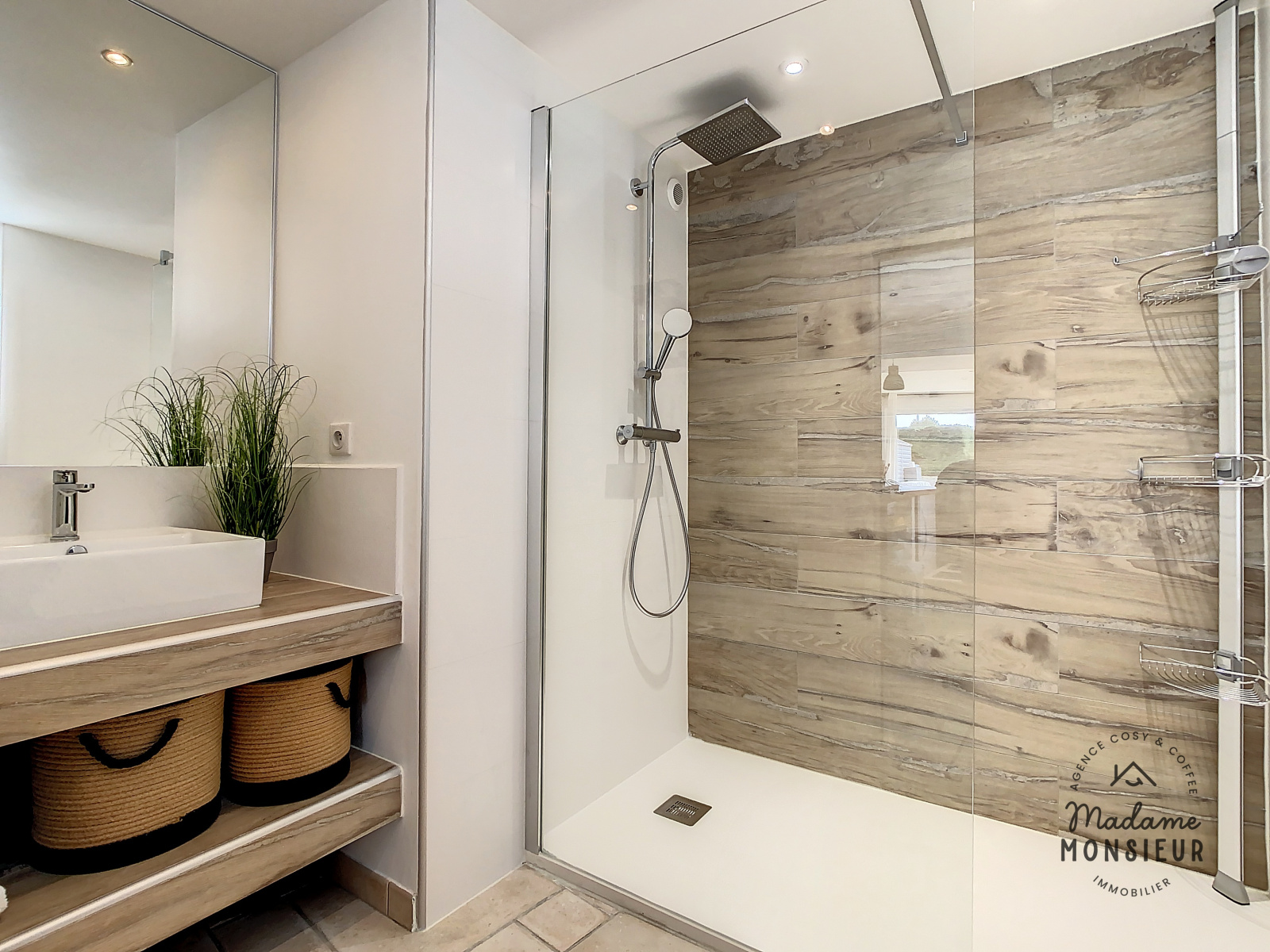 Avec en plus, un cellier, une buanderie,un wc séparé et une salle d’eau.