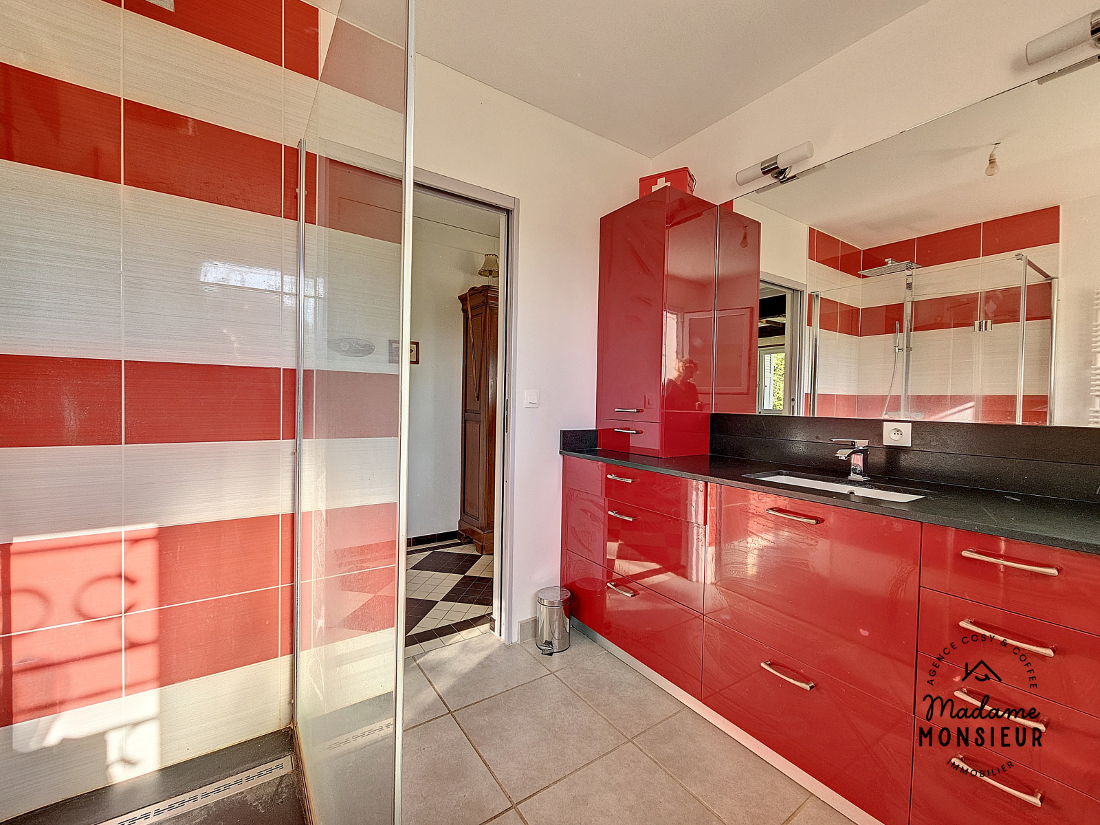 Vous disposerez d'une salle de douche, à l'italienne, accompagnée de sa double vasque. Toilette indépendant.