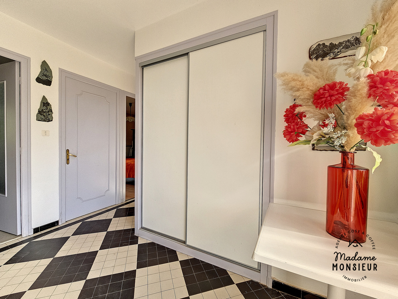 Venez découvrir les espaces de ce bien en commençant par une grande entrée lumineuse avec placards, donnant sur une cuisine aménagée et équipée, s'en suis un salon séjour traversant exposé est/ouest.