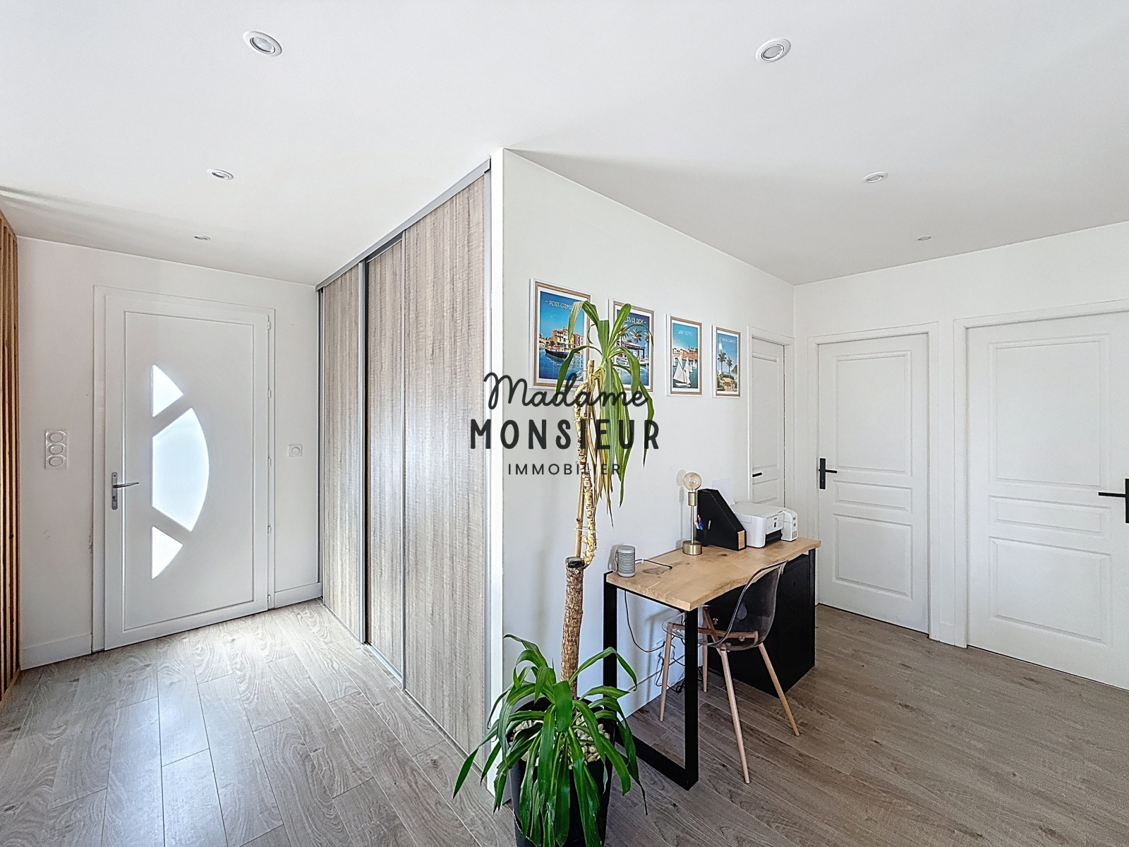 Élevée sur un sous-sol complet, elle offre environ 160 m² de surface utile, dont 80 m² habitables à l’étage. Vous y trouverez une belle pièce de vie lumineuse, ouverte sur une cuisine équipée et meublée, un coin bureau aménagé dans le dégagement, une salle d’eau moderne avec douche à l’italienne, ainsi que deux chambres, dont une avec un grand dressing.