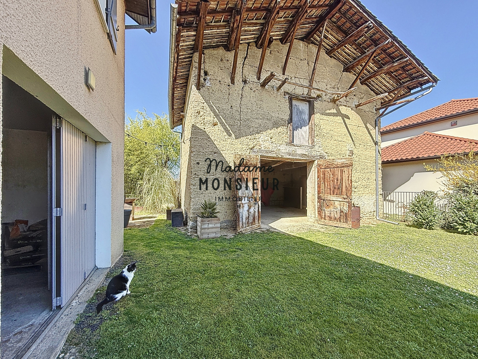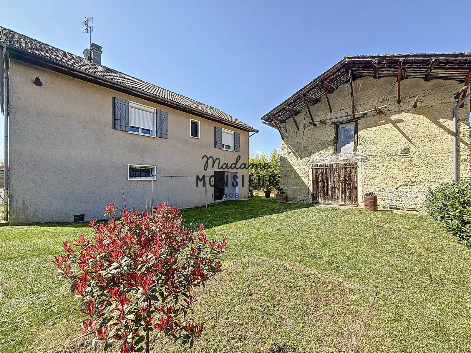 À l’extérieur, sur une parcelle plate, piscinable et joliment arborée, vous bénéficierez également d’une grange non attenante d’environ 80 m² au sol. Cet espace est idéal pour un atelier, un local pour une activité artisanale ou encore un garage indépendant, permettant ainsi d’exploiter pleinement le rez-de-chaussée de la maison.