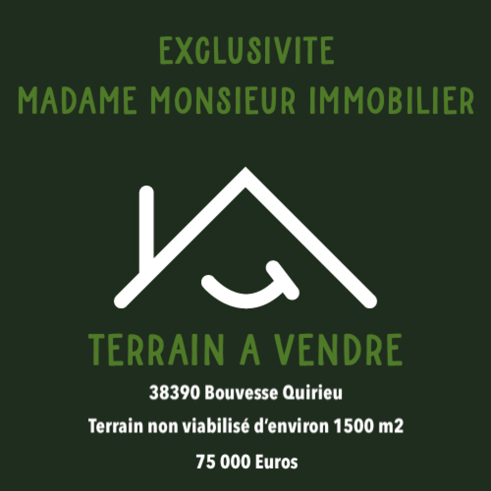 Exclusivité Sur la commune de BOUVESSE QUIRIEU, nous vous proposons ce charmant terrain. Vous aurez droit à 1500 m² environ pour réaliser votre rêve grâce à la conception d'une villa familiale. Si ce terrain vous intéresse, votre agence MADAME MONSIEUR IMMOBILIER se tient à votre disposition. Contactez Landry RABATEL (Ei) au 06.26.86.03.84 ou landry@madame-monsieur-immobilier.com (RSAC : 90344273900012)
