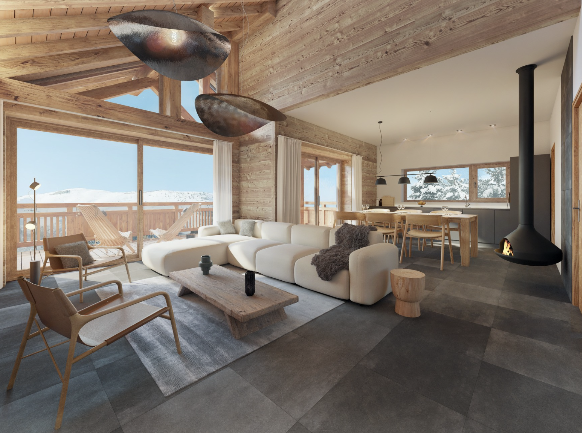 La montagne s’invite à l’intérieur, vivante, majestueuse, changeante au fil des saisons.