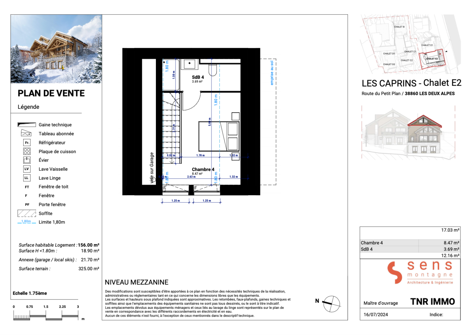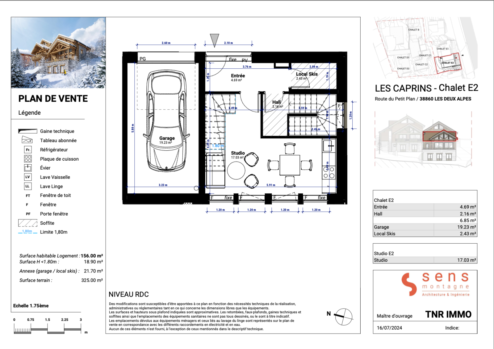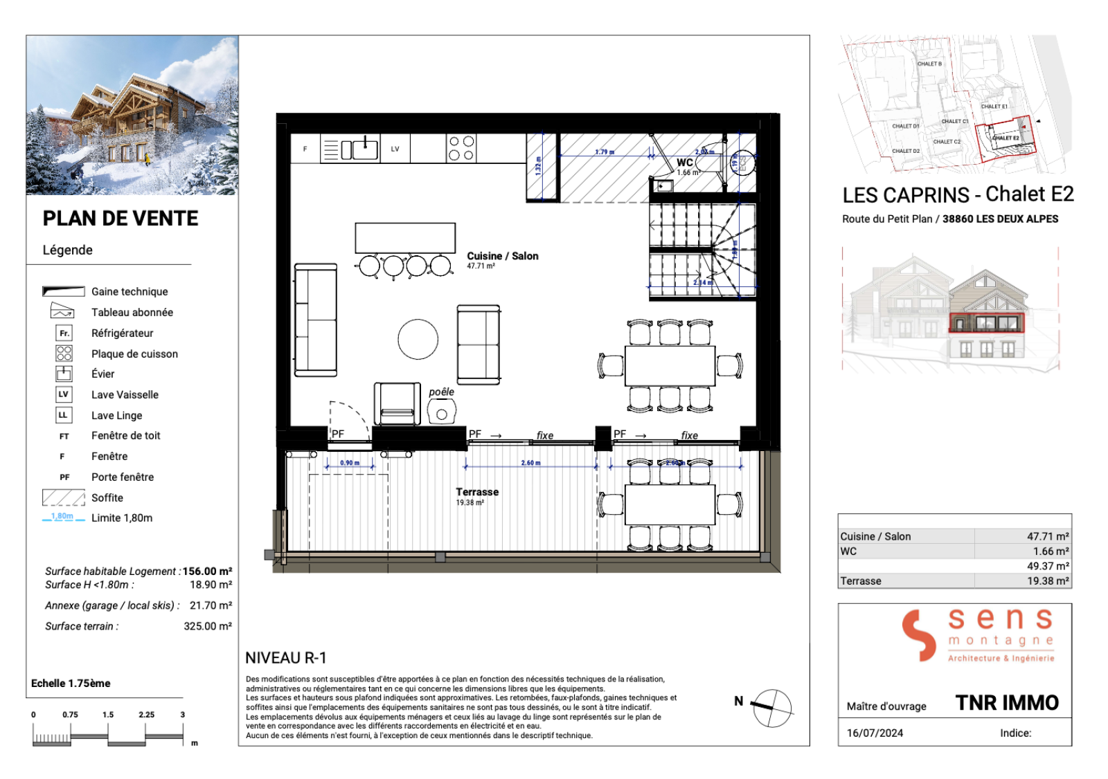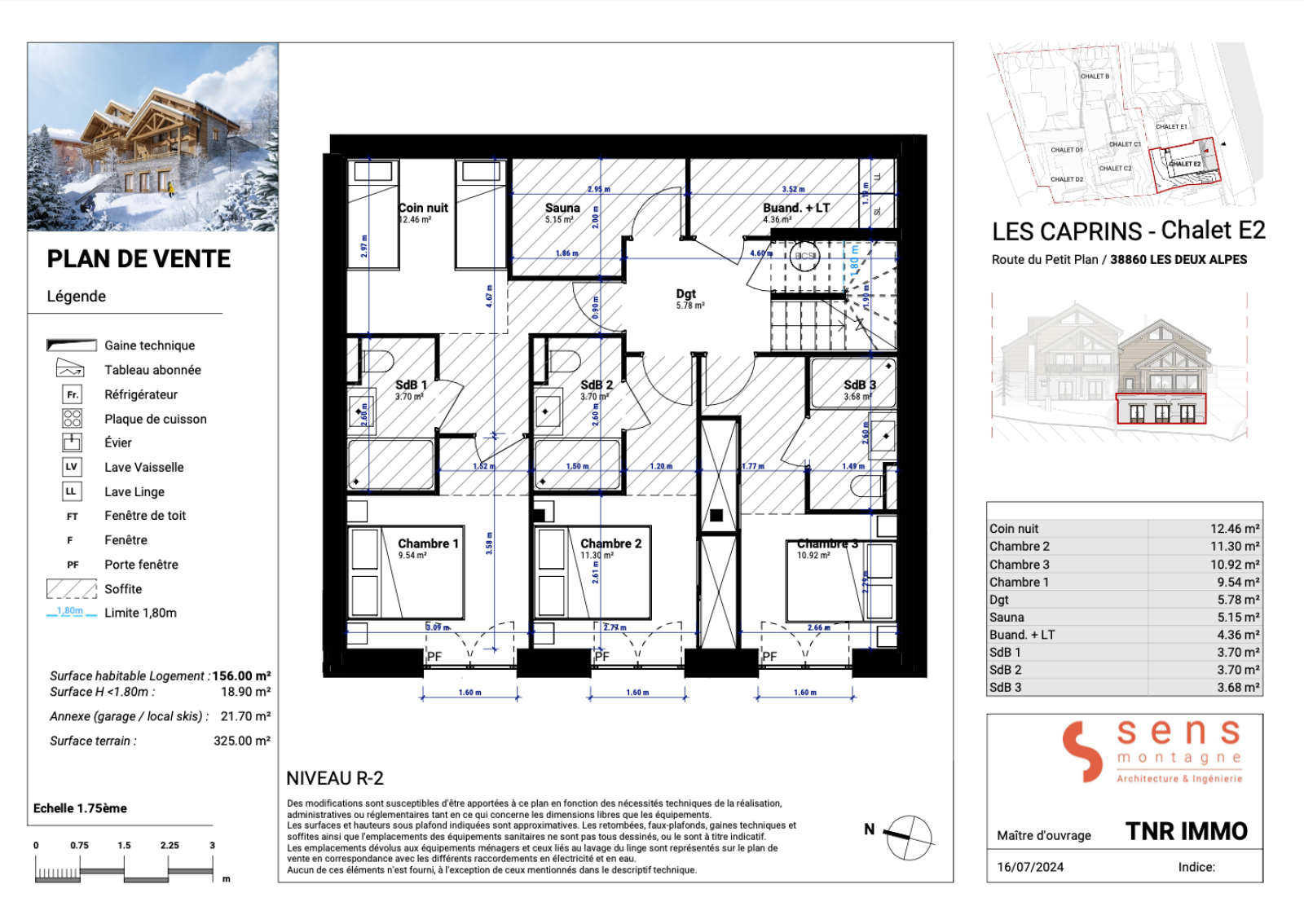 • Surface habitable : 156 m², répartie sur 4 niveaux en T6 + Cabine