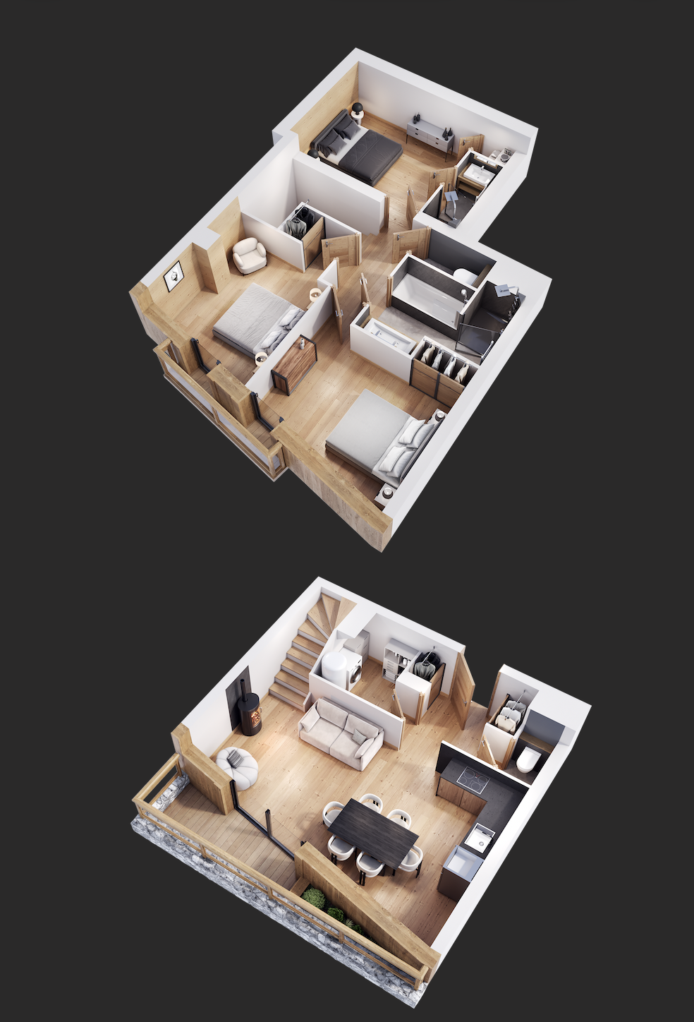 Un bien à l’esprit « chalet contemporain » se retrouve dans cette résidence intimiste, où chaque appartement a été dessiné pour maximiser la lumière naturelle, les vues, et la fluidité des espaces.