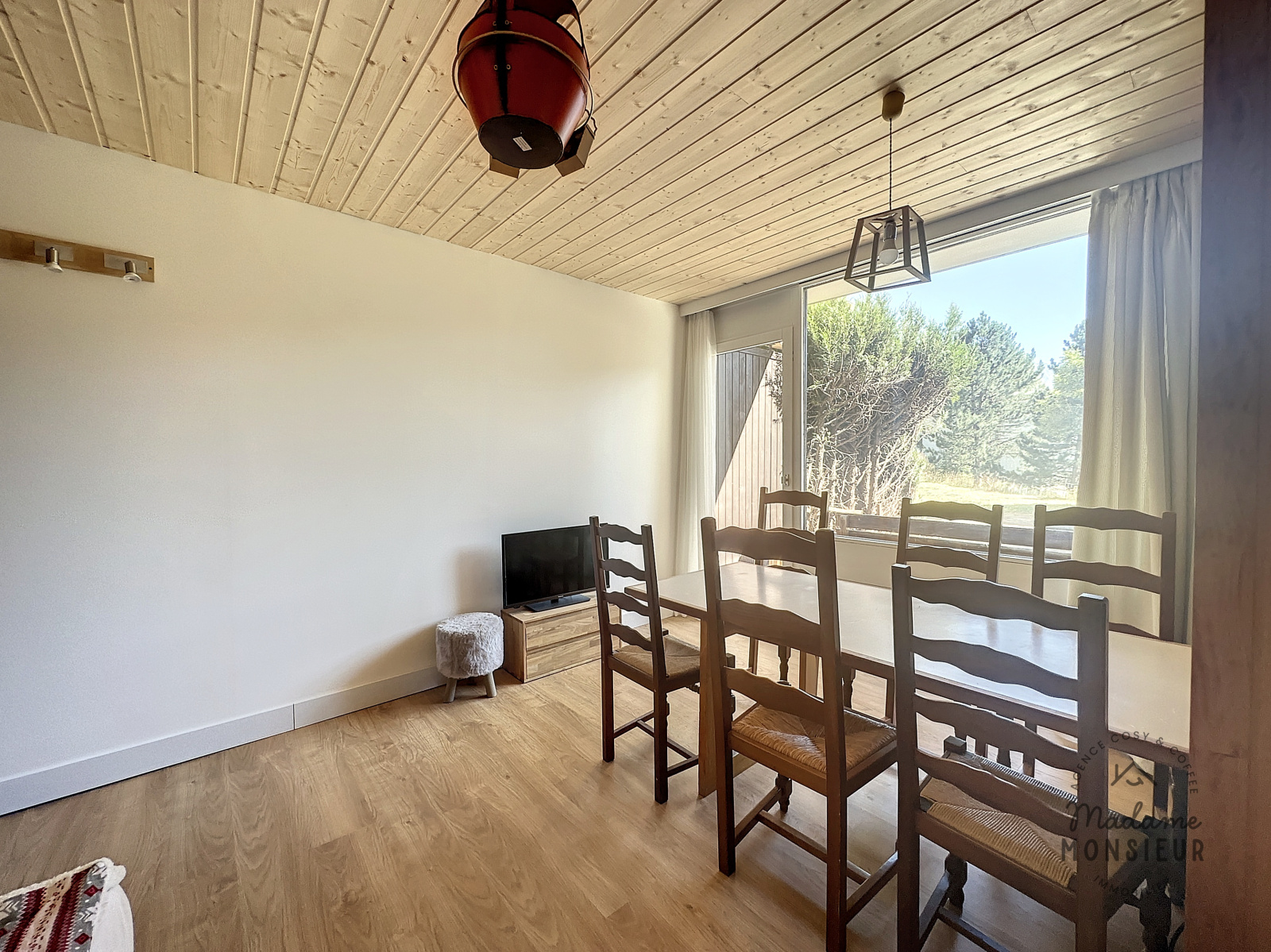 Composé d'un spacieux hall d'entré très pratique, nous retrouvons un coin cuisine, une salle de bain, un coin cabine et le salon-séjour donnant accés à une terrasse exposé plein sud.