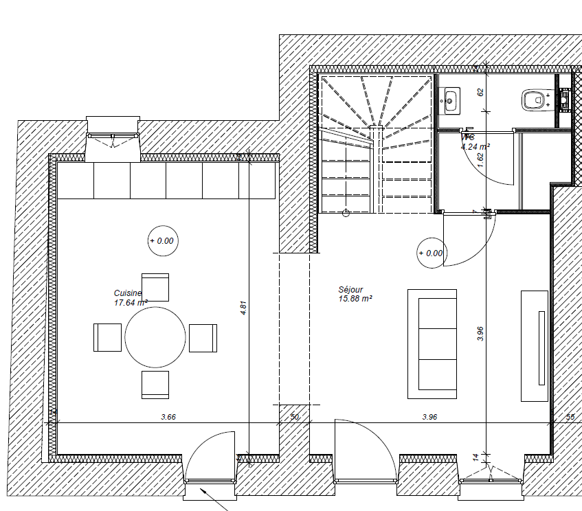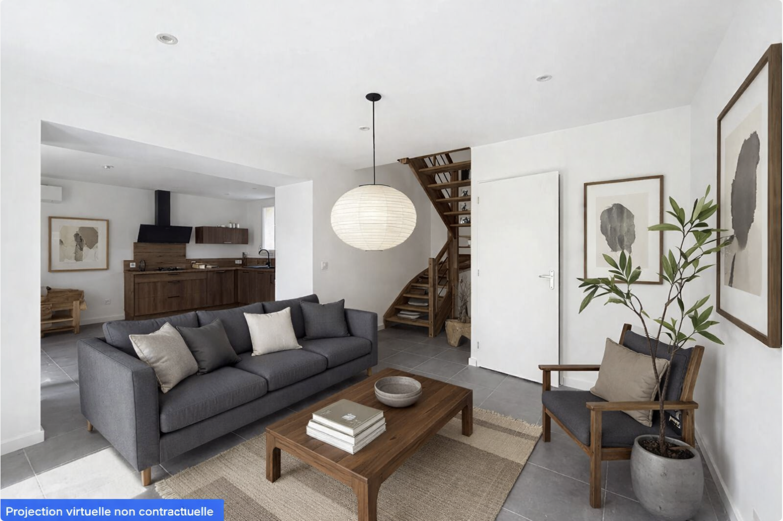 Une rénovation contemporaine qui respecte l’âme du lieu : parquet chaleureux, matériaux de qualité, volumes bien pensés.