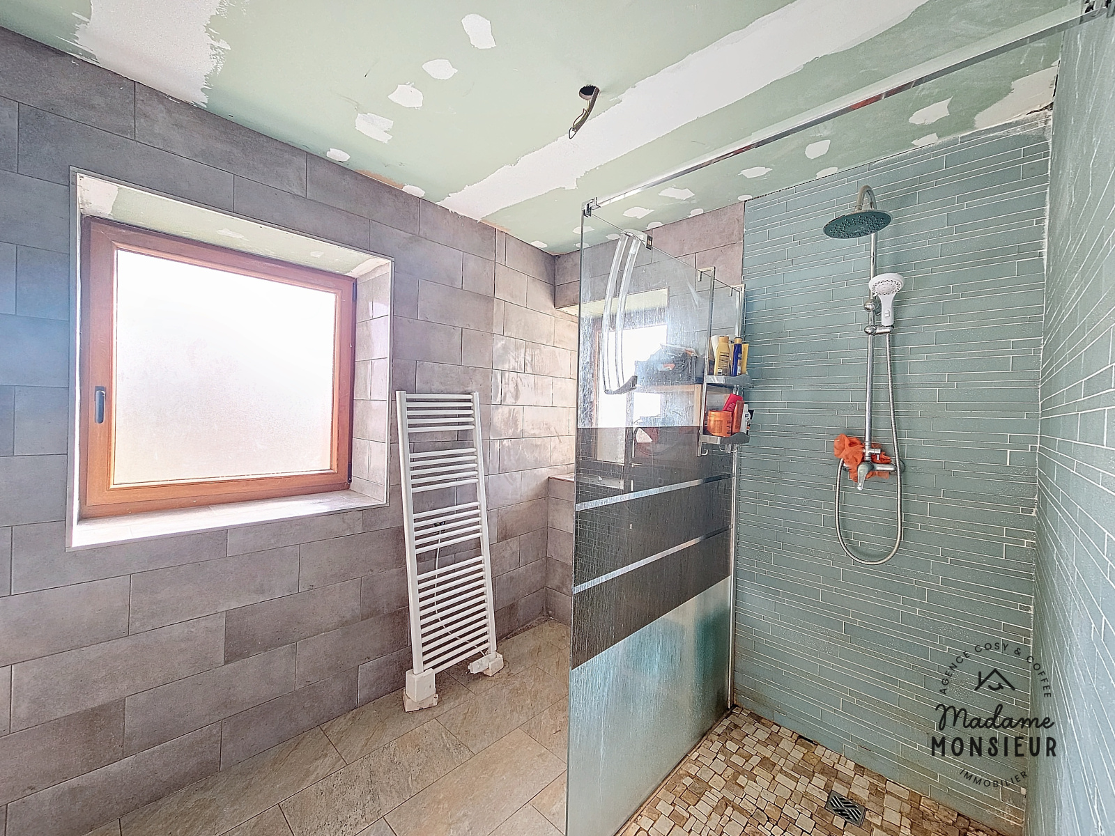 Nous retrouvons également une salle d'eau à finir avec douche à l'italienne ainsi qu'un WC (hors d'usage actuellement).