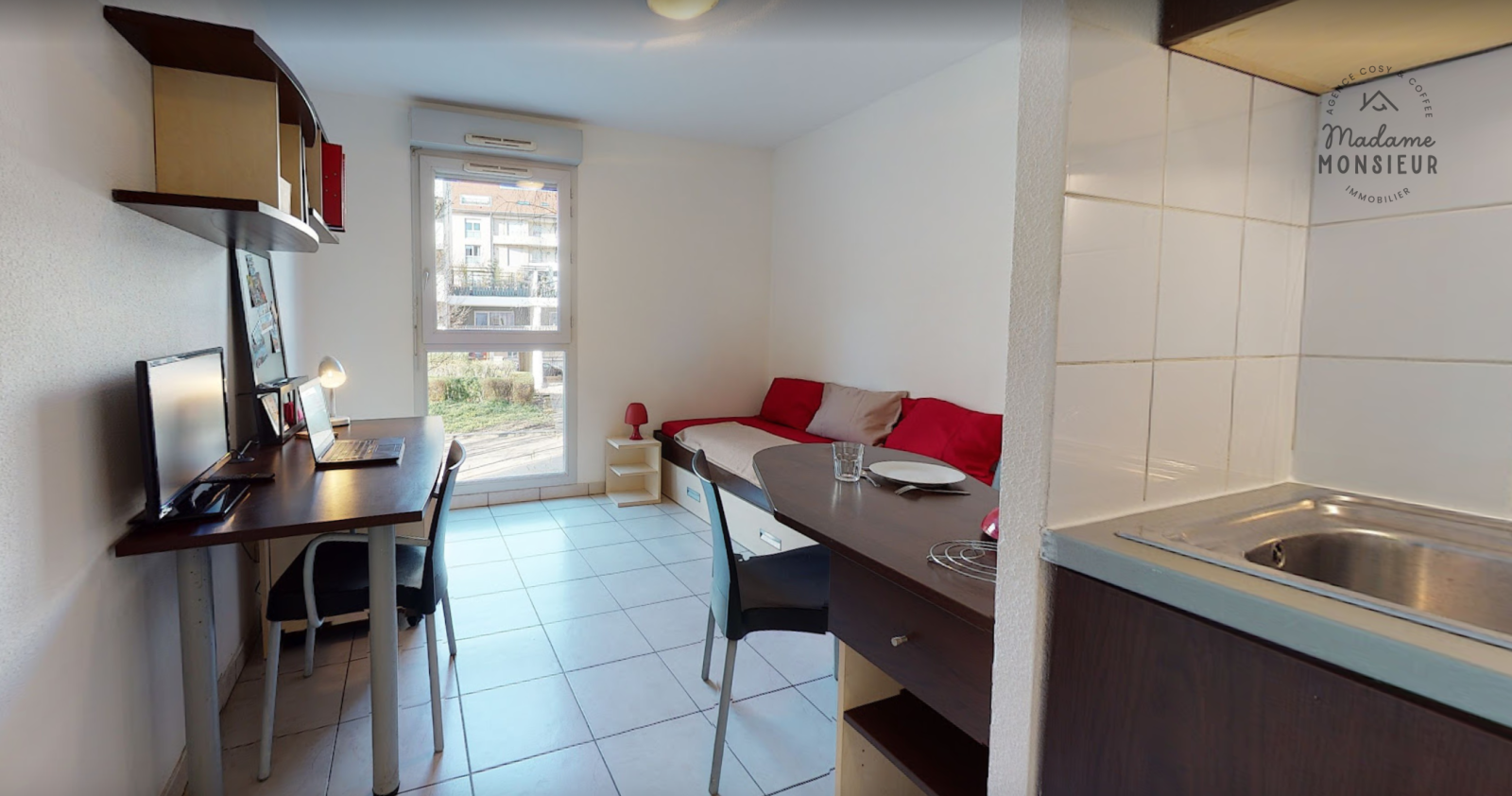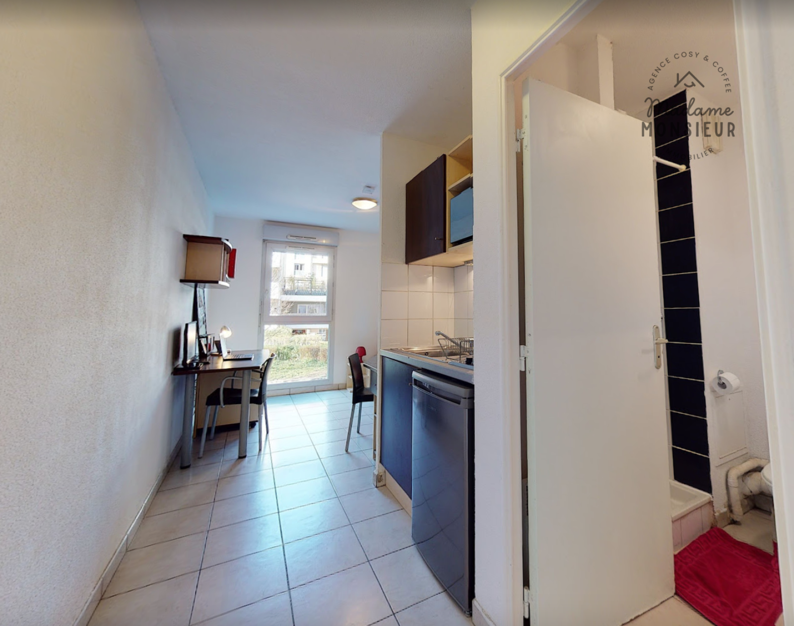 Studio à vendre à proximité des école étudiantes, résidence étudiante de qualité (construction de 2016), un joli studio au 2 ème étage de 18,6 m ² meublé et optimisé avec un coin cuisine équipée, espace nuit, salle d'eau, WC, rangements intégrés.